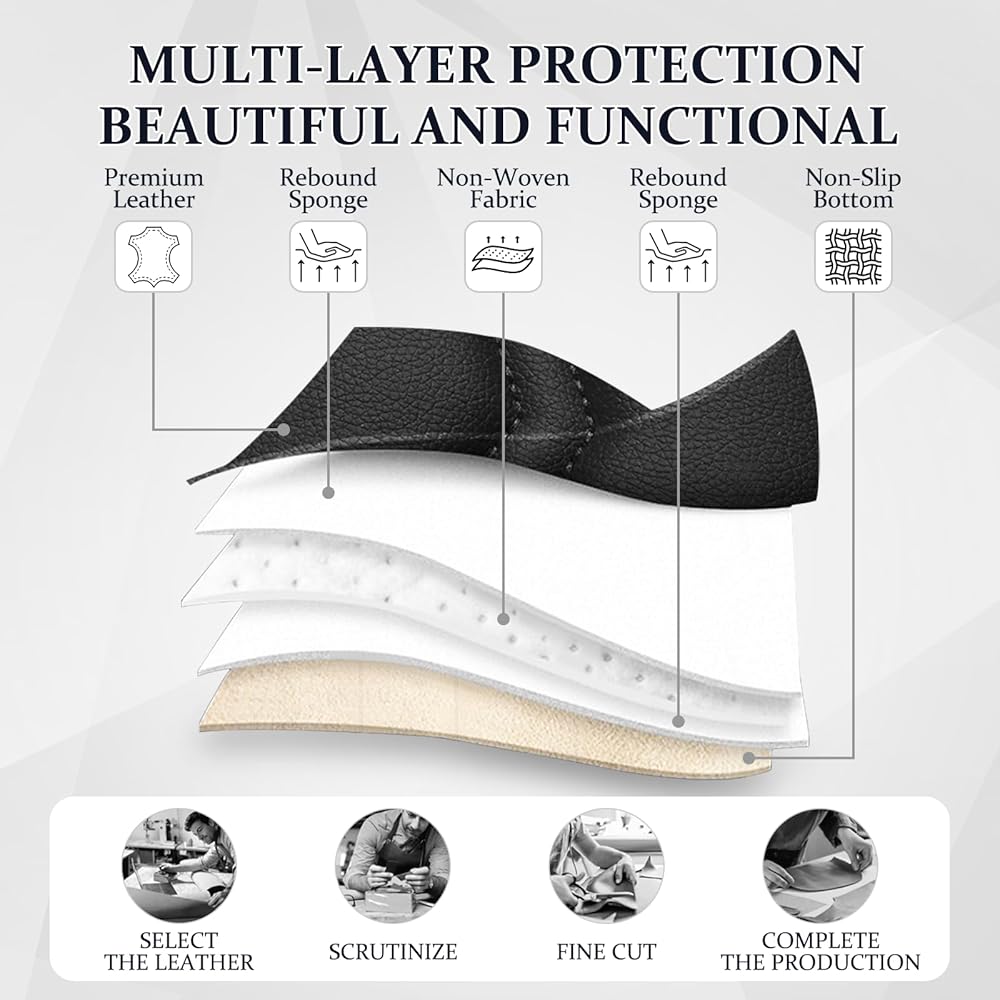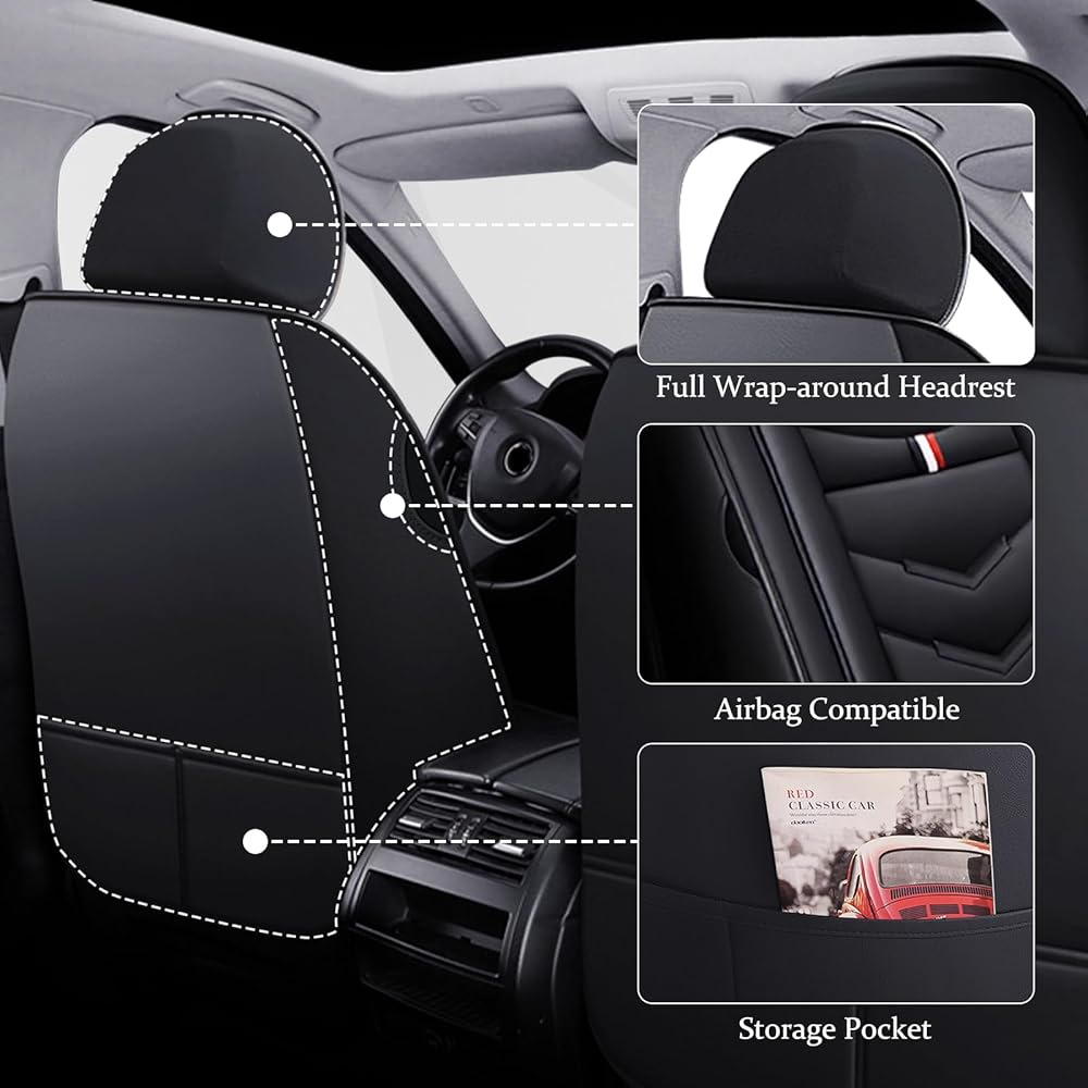 [PREMIUM LEATHER] The car seat cover contains five layers of highly elastic composite artificial leather material, with layer-by-layer protection, only to provide a comfortable riding experience while providing effective protection for the car seat.
