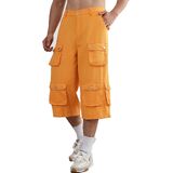 Mens Casual Cargo Patchwork Blue Denim Jeans Shorts with Zippers
