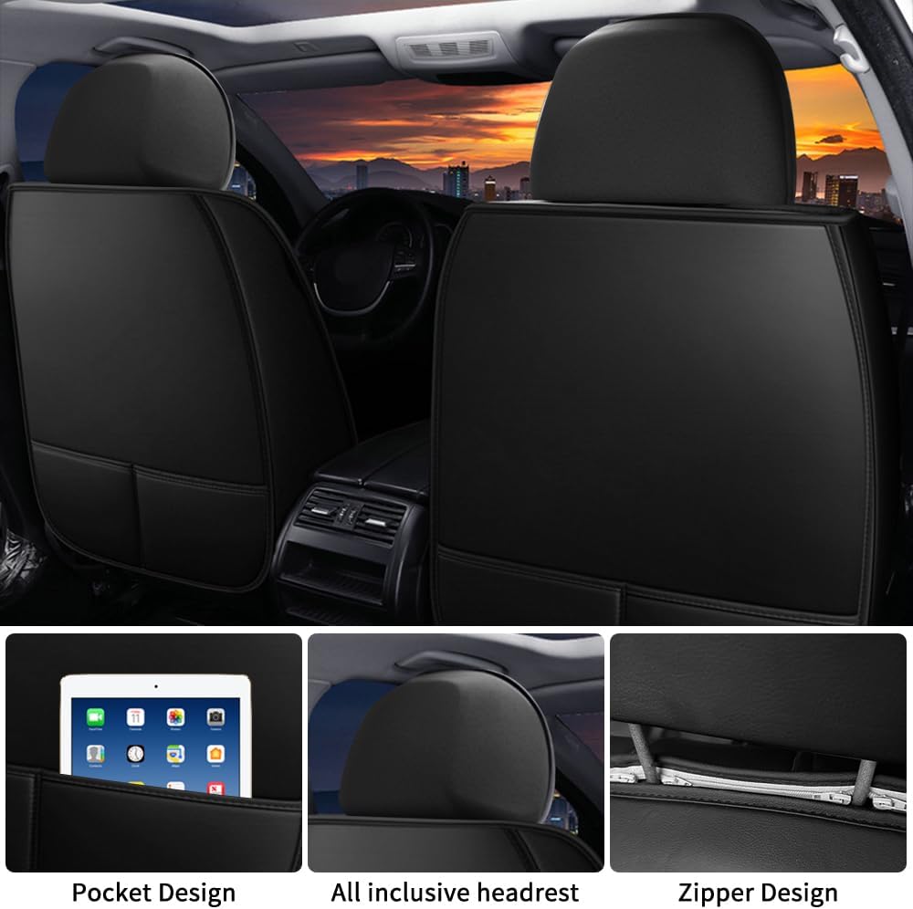UNIQUE DESIGN: Seat cover features adjustable split rear seat cover with Velcro and storage pockets on both front and rear sides of front seats.Airbags and seat belts are compatible,keeping the seat function intact,We combine fashion and sport aesthetics to make your driving more enjoyable.