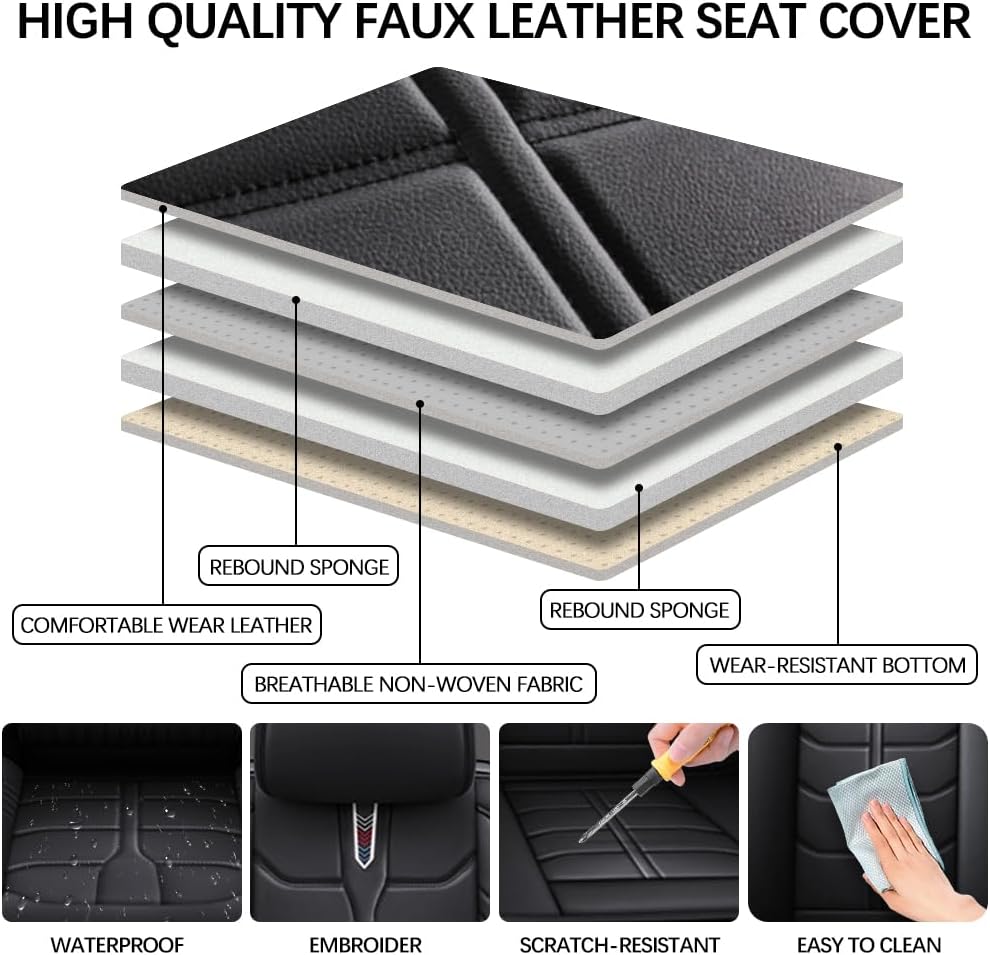 EASY TO MAINTAIN: Seat cover Nappa leather is waterproof, car seat cushion protects seats from dirt,dust,pet hair and scratches.Easy to take care of,just wipe it with a damp and soft towel.It can remove the dust and stains on the surface and make the car seat covers look brand new.