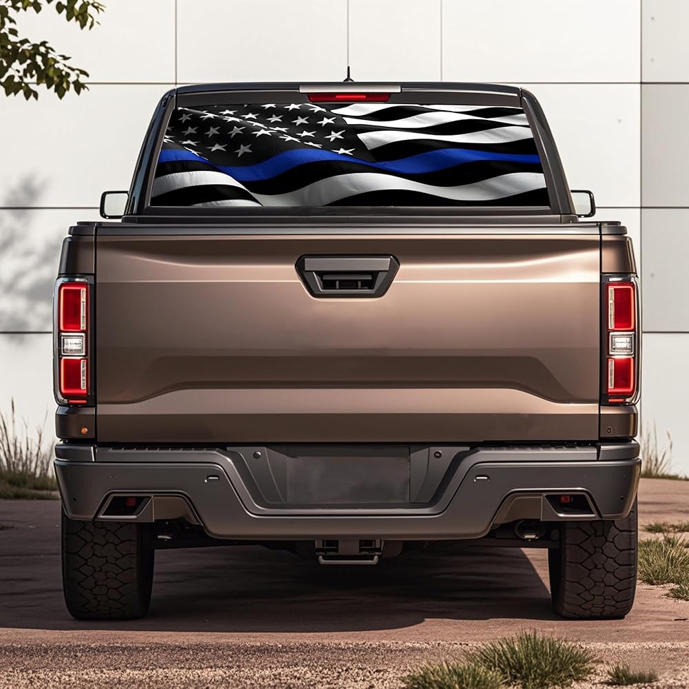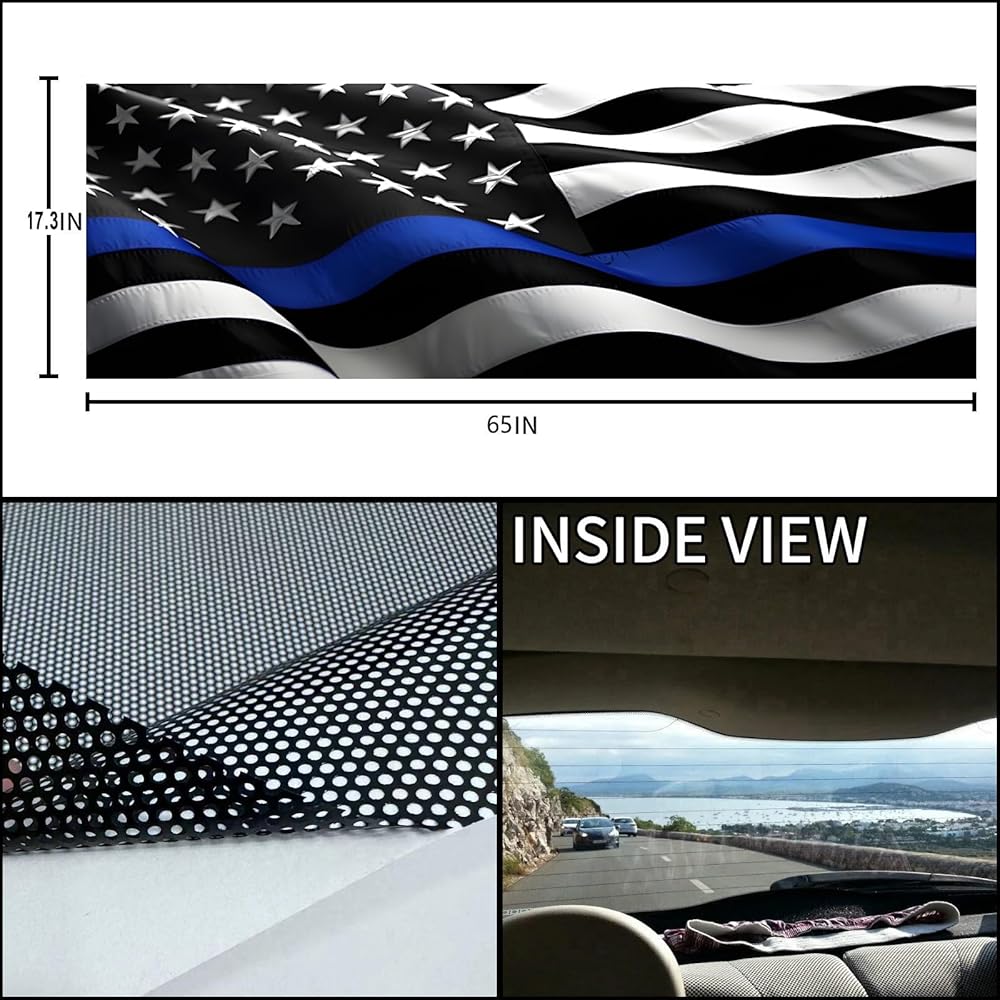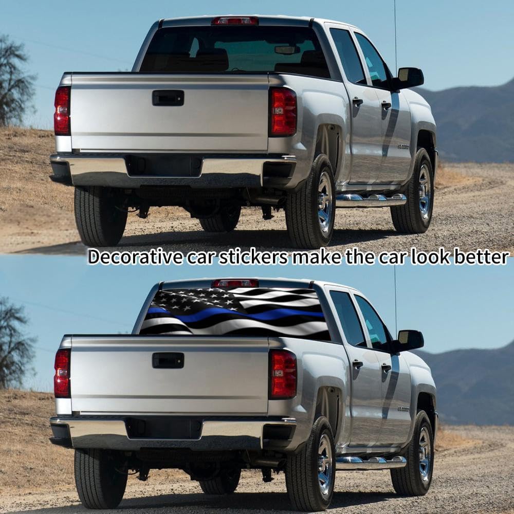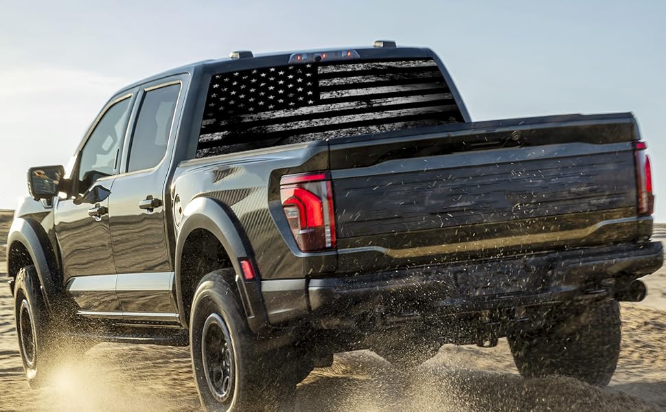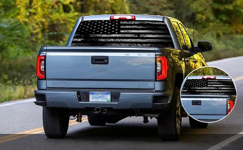 【Aesthetic & Practical】Our truck rear window American flag decals also have practical value. Reduce sun exposure inside the vehicle and provide partial shade. These decals also enhance privacy by limiting visibility inside the vehicle without blocking the view outside. The universal size of this decal is 65 x 17.3 inches, which fits most full-size truck rear windows, but we recommend that you check your truck's rear window dimensions