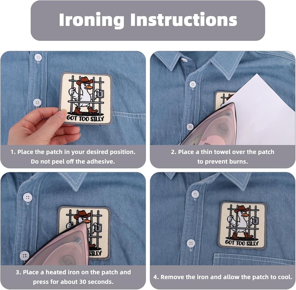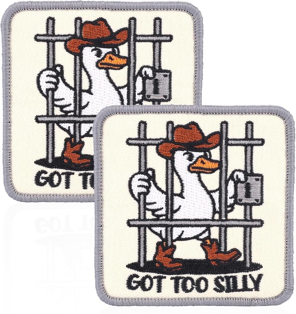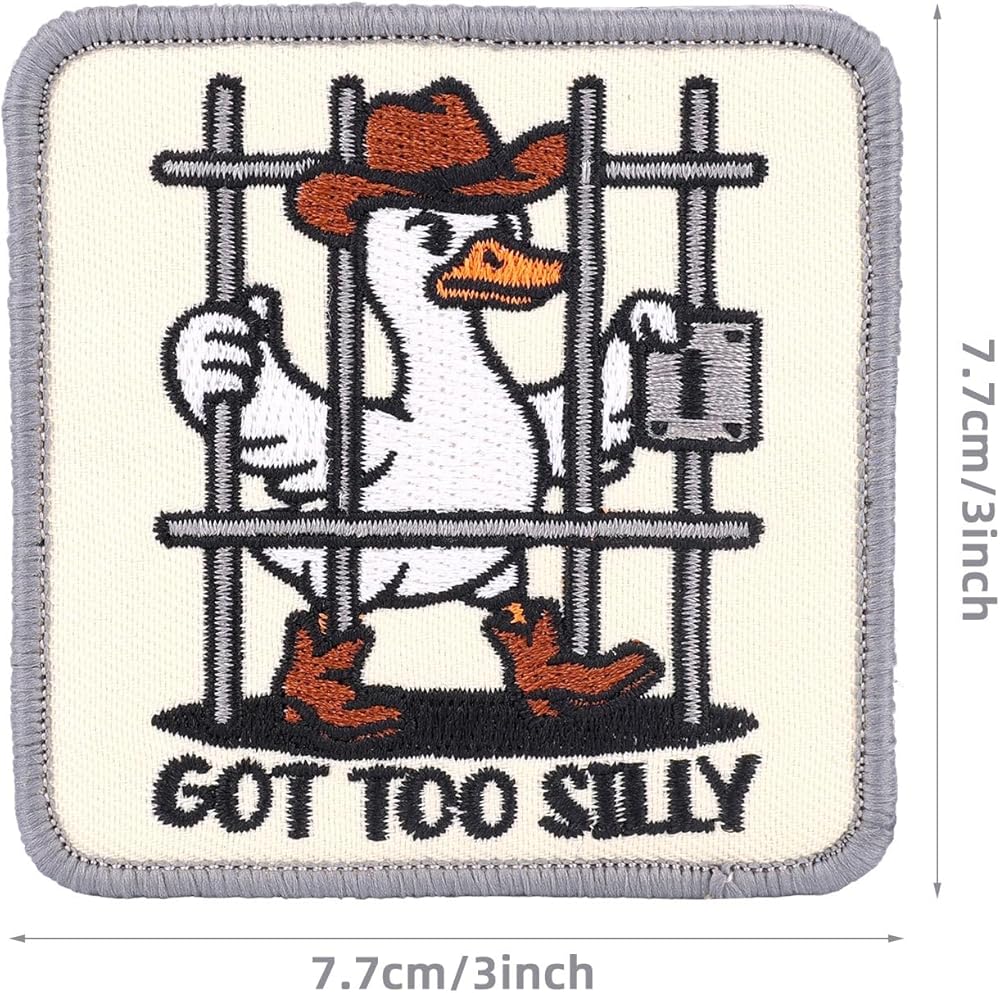 2pcs Got Too Silly Goose Patch, 3 Inch Funny Ironing On Patches Embroidered Cartoon Applique Silly Goose Sew on Applique for Clothing Bags Backpacks Jeans Hats