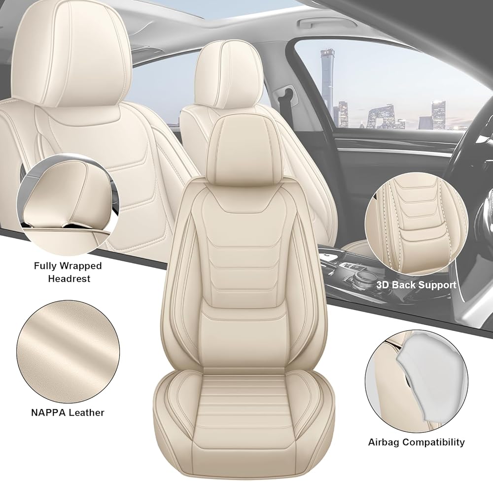 Create a worry-free cabin for your SUV or family car like the Honda Pilot, Toyota Hollander! These seat covers are made of soft, easy-care Napa leather that easily resists juice spills, snack crumbs, pet paw prints, and even melted crayons and mud stains, wiping clean in a flash. Precision laser-cut ventilation holes keep the seat fresh and sweat-free on long summer family outings or camping trips. The elastic sides are perfect for all kinds of child safety seats and booster cushions, and they automatically recover after removal without leaving marks or sagging. SAFETY FIRST: Special stitching design ensures that the airbags will not affect the normal ejection of the airbags, and the solid anchor points and non-slip base lock the seat cover firmly, so that it will not shift even if the child climbs. Say goodbye to stain worries and let the car switch seamlessly from baby daddy mode to date occasions - easy to install, no need to compromise on safety, bringing long-lasting cleanliness, comfort and peace of mind to every family journey, and giving your car's cockpit a fresh new look!