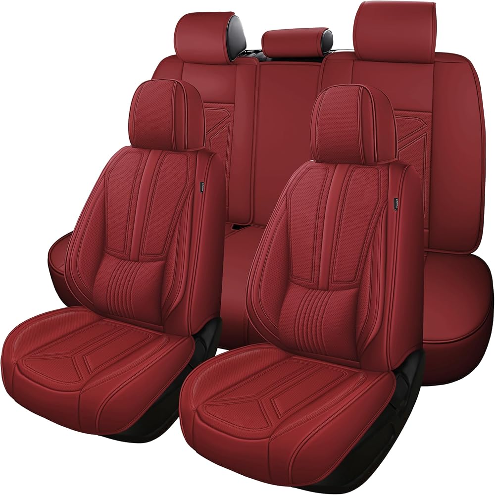 otoez Car Seat Covers Full Set, 5 Seats Nappa Leather Seat Cover for Car Seden SUV Truck, Waterproof Automotive Seat Cover Full Coverage Front and Rear Seat Protector, Red