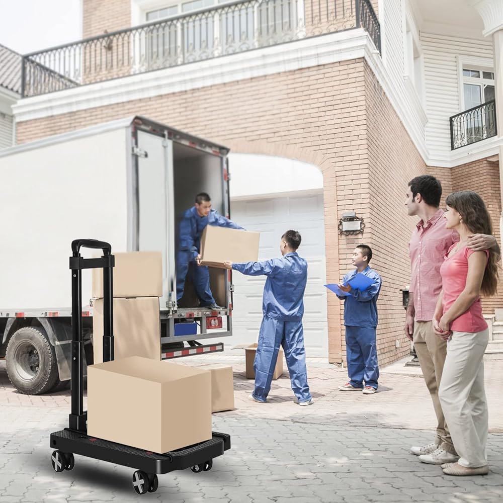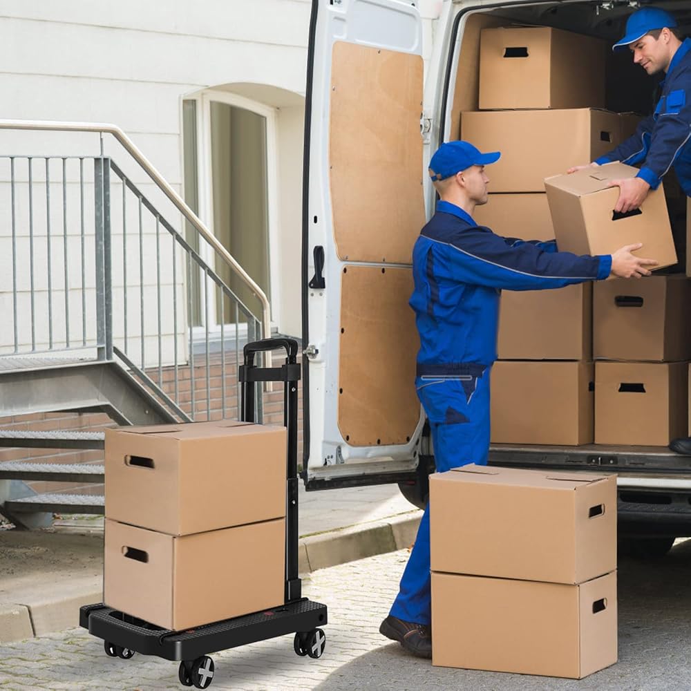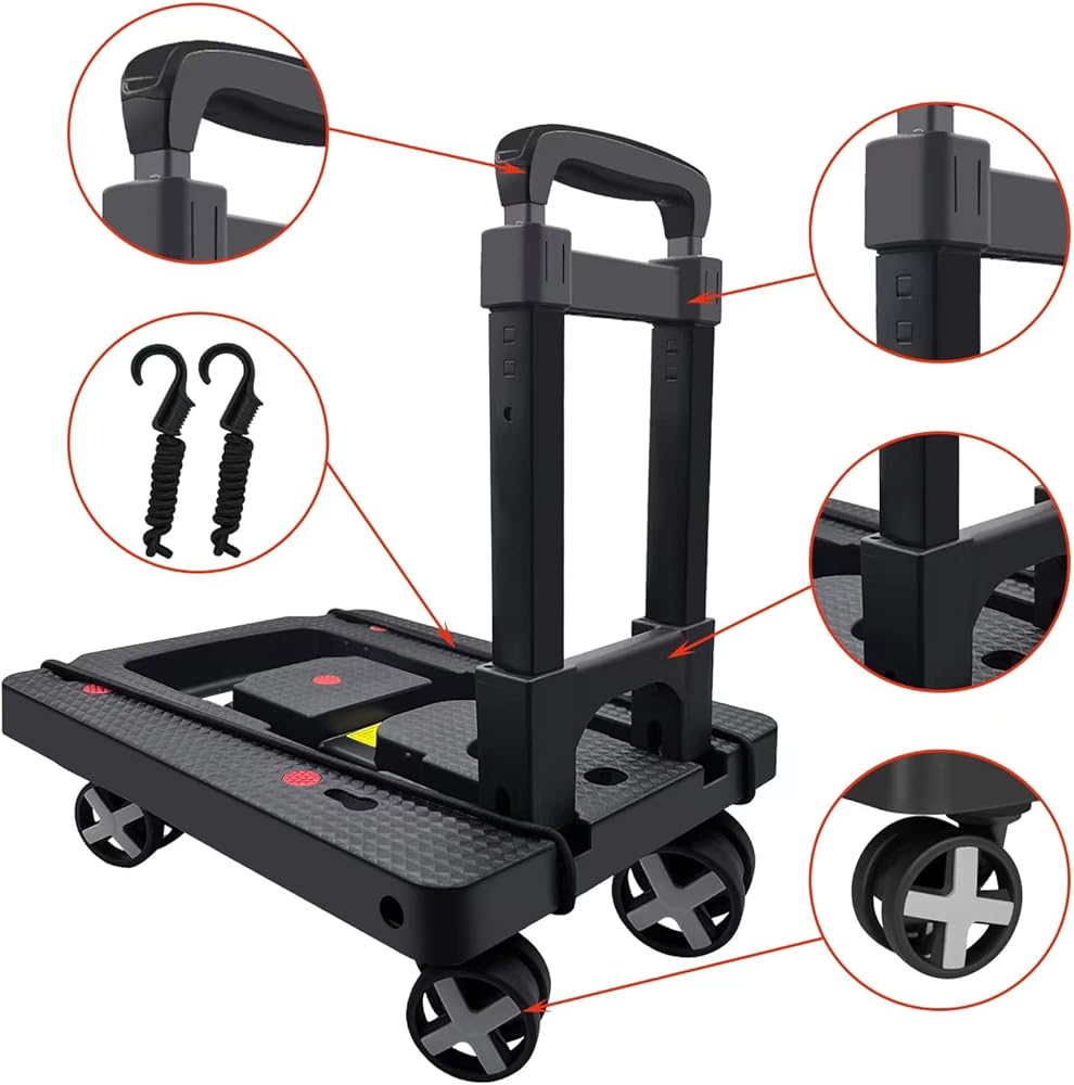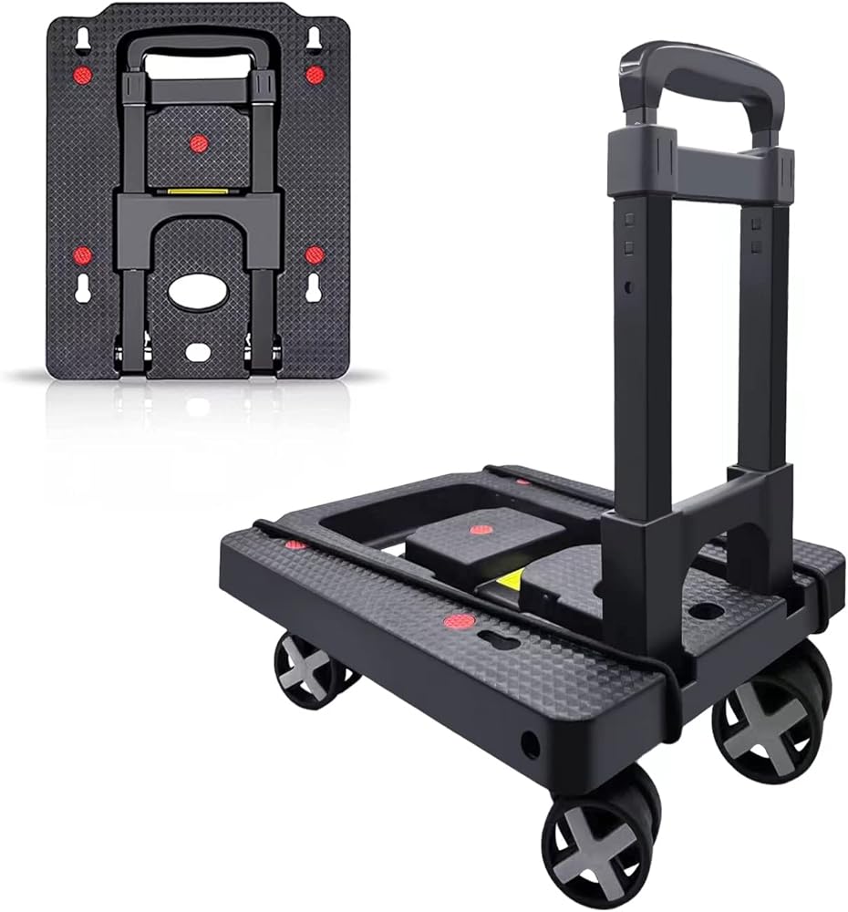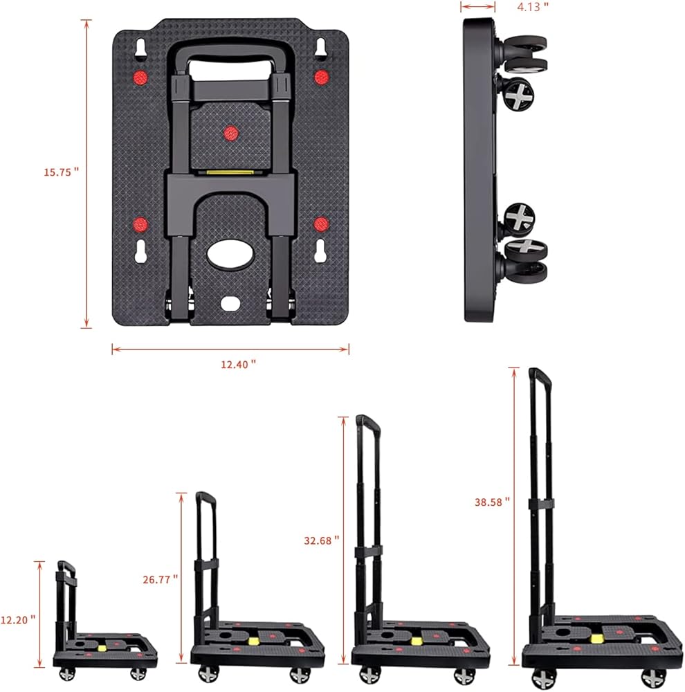 ✔【Simple and Lightweight】- The folding size of the foldable trolley is: 15.75" * 12.4" * 4.13". The anti-skid pad on the board can help the goods to be more stable during transportation. The high-strength PP bottom plate has a strong bearing capacity. ⚠️Maximum load Capacity is 110 lbs.