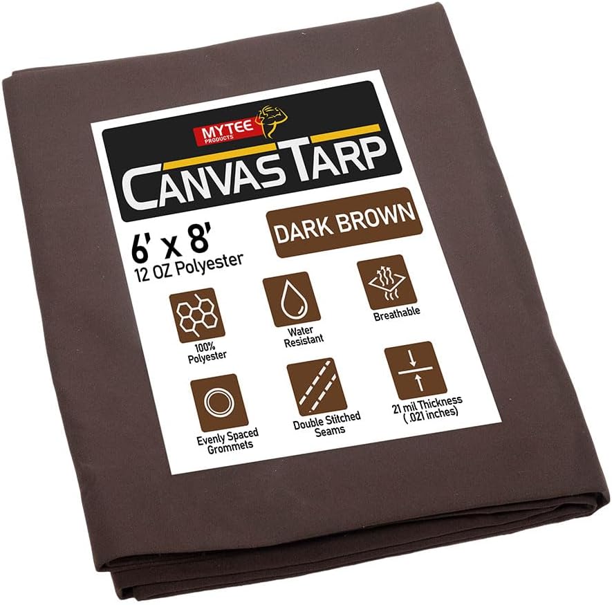 Mytee Products 6' x 8' Dark Brown Canvas Tarp 12oz - Water Resistant & Breathable - Heavy Duty Tarps - Multipurpose Tarpaulin Cover for Camping Tent