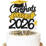 PERMIUM QUALITY:Congrats class of 2025 cake topper is made of high quality double sided black sparkle cardstock,Sturdy cardstock and glitter will not shed off.