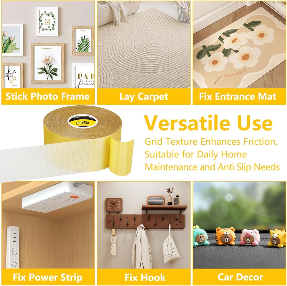 Double Sided Tape Heavy Duty Tape and Carpet Tape High Tack,2inX66FT Multipurpose Non-Marking Tape Removable No Residue, Easy Tear, Suitable for Office and Home Easy to Use Mounting Tape