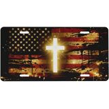 The American Flag Golden Shining Cross Front License Plate Car Decorative License Plates Aluminum Metal Decor Accessory Novelty Vanity Tag Cover with 4 Holes for Men Women 6" X 12" in Kuwait