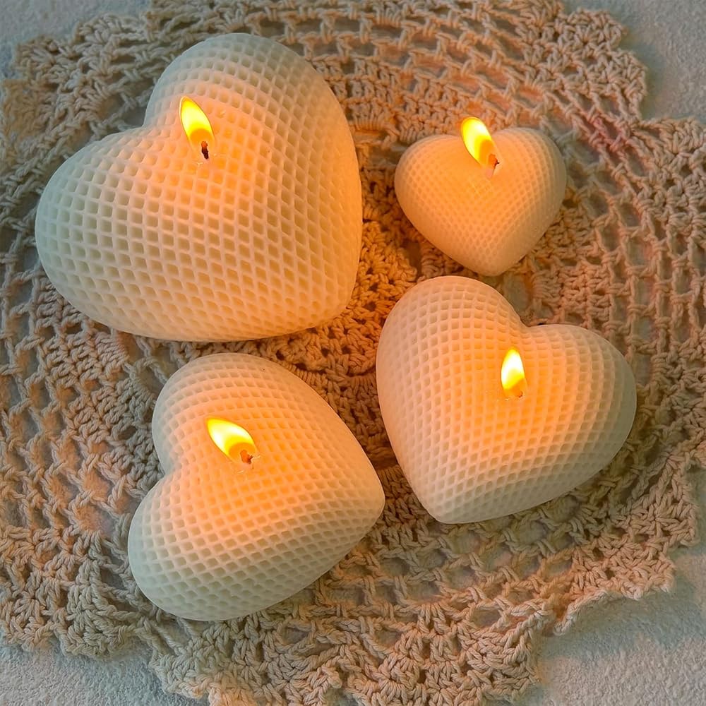 Japleed 3PCS Woven Mesh Heart Candle Soap Silicone Mold, Heart Shape Silicone Molds for Epoxy Resin Casting Concrete Wax Plaster, 3D Unique Valentine's Day Mold for DIY Craft Keychain Home Decor