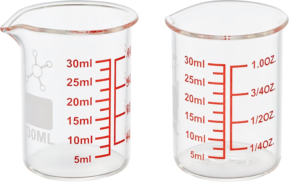 Versatile Kitchen & Lab Beakers – These borosilicate glass measuring cups withstand extreme temperatures, adapting to diverse uses such as refrigerator storage, microwave heating, stovetop simmering, oven baking, and even chemical mixing. Perfect as bartenders' measuring cups, glass jiggers, or mini measuring cups for precise recipes.