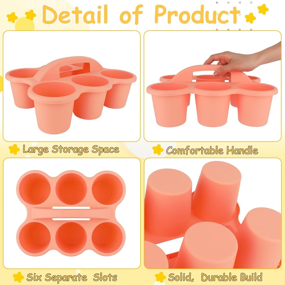 6 Pack Classroom Caddy with Handle 6 Compartments Table Caddies for Classroom Plastic Drink Cup Caddy Holder Portable Storage Caddies for Art School Office Organization