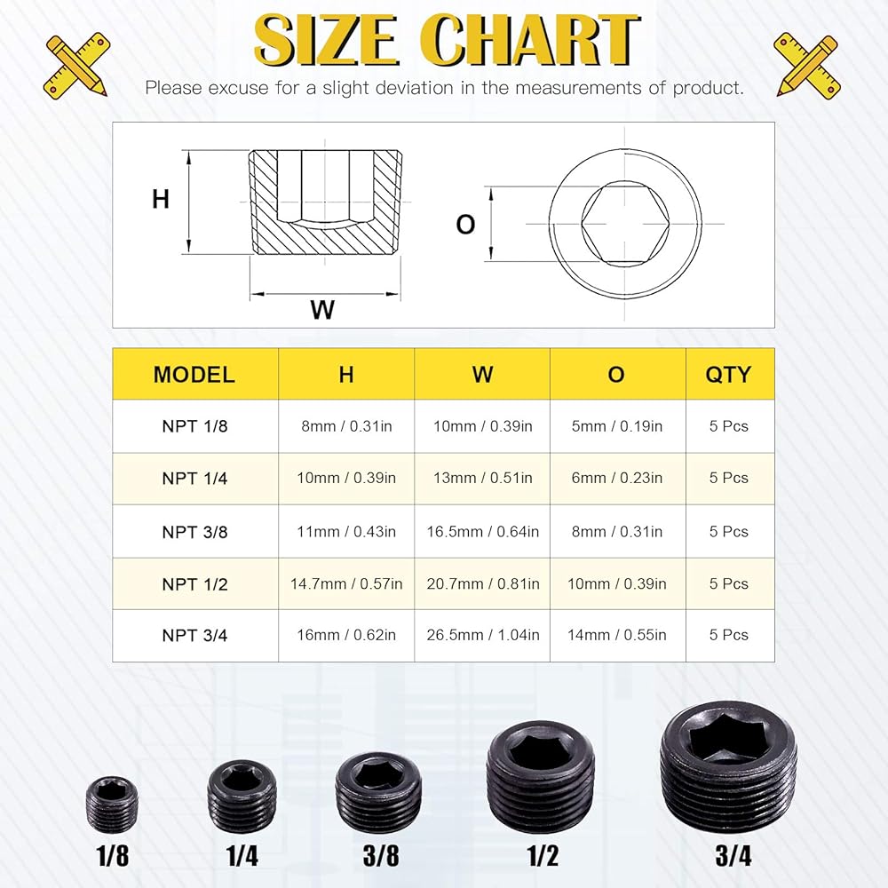 ♞Mardatt NPT Plug Pipe Plug Fitting Carbon Steel Male Thread Internal Allen Head Pipe Plug Set