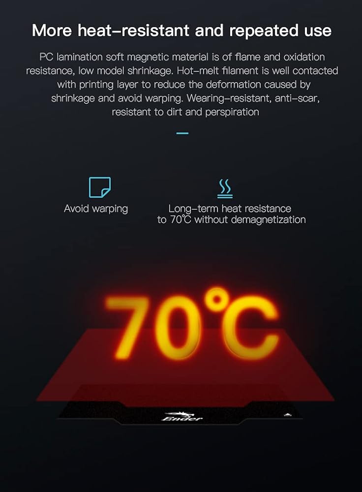 This 3D Printer Heated Bed Cover is not for use with high-temperature printing applications above 70°C.