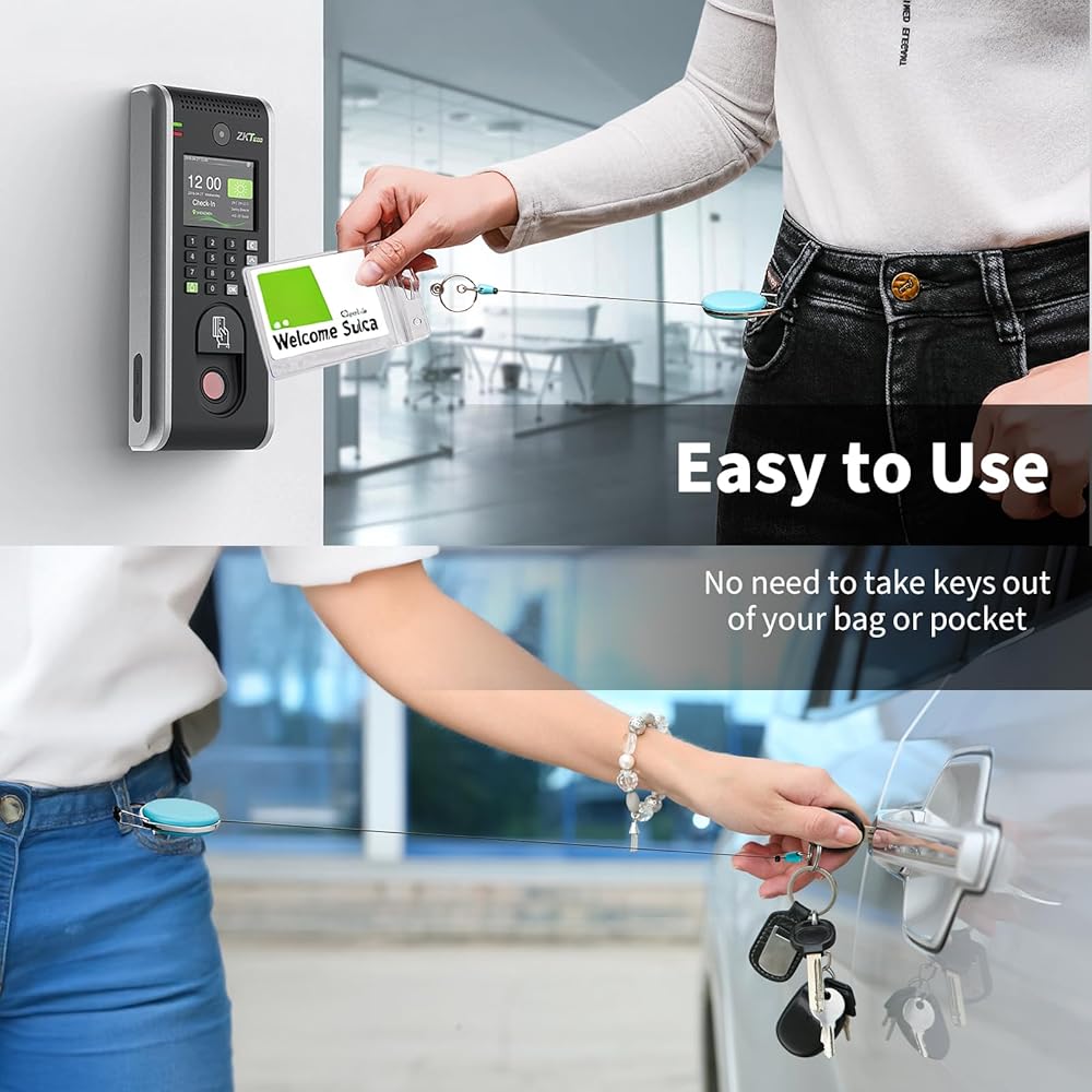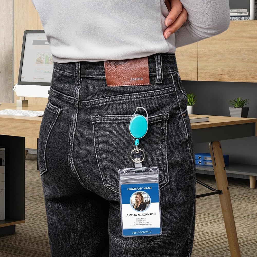 Introducing the 2-Pack Soft & Durable Retractable ID Badge Holders—crafted for everyday use with a perfect blend of flexibility and toughness. Each holder features a soft, crack-resistant sleeve with generous inner dimensions (3.7″ × 2.5″) that accommodates multiple ID or access cards without being bulky. The slightly larger clear sleeve ensures your cards stay protected and visible. The sturdy back clip lets you attach the holder securely to your pocket, belt, or lanyard for quick, hands-free access. Meanwhile, the smooth yet robust retractable cord is engineered to endure repeated pulling and snapping back without failure. Whether you're a nurse, teacher, office worker, or event staff, this 2-pack gives you a spare or lets you share with a colleague—available in attractive color variants to suit your style. WEZEBEL delivers functionality, durability, and convenience in one compact package—your ultimate go-to badge holder for daily access needs.