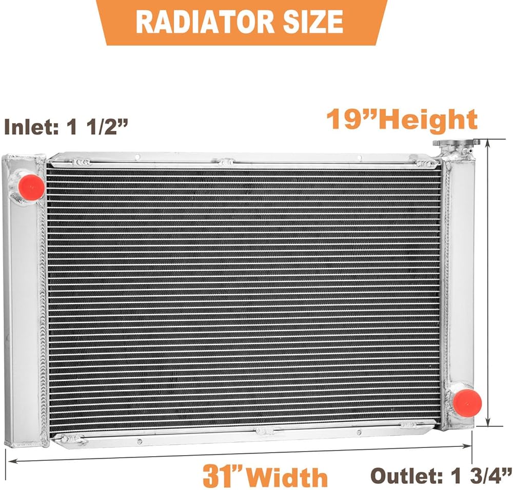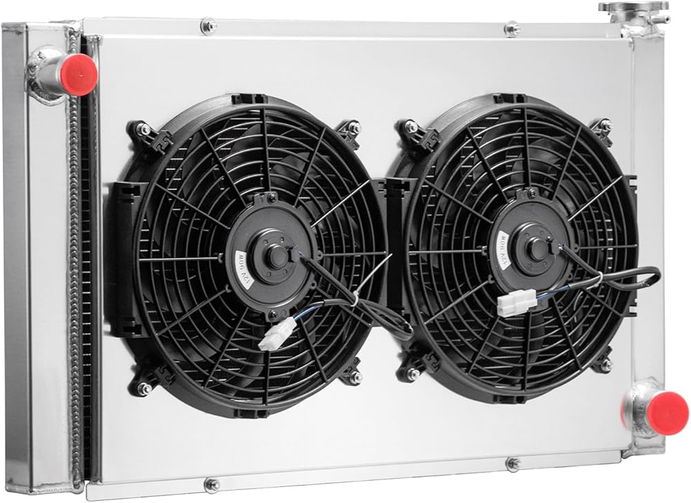 This 3-Row Radiator is at least 40% to 50% more efficient than stock ones, with 2x 12'' Electric fan, Maximum Fan CFM: 1730 cfm