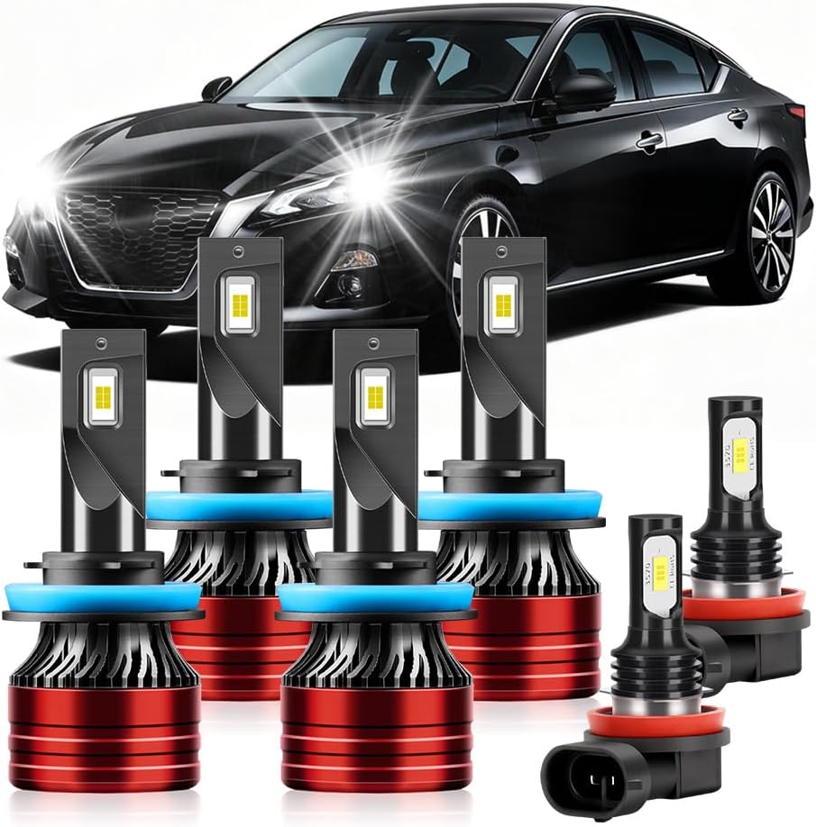 Product Fitment & Package Details:Fitment for 2007 2008 2009 2010 2011 2012 2013 2014 2015 2016 2017 2018 Nissan Altima;The Package Includes 6pcs light Bulbs:2pcs High Beam 2pcs Low Beam and 2pcs Fog Lights Bulbs.Adopting the new-generation CSP 3570 chip, this solution achieves significantly faster and more powerful operational efficiency