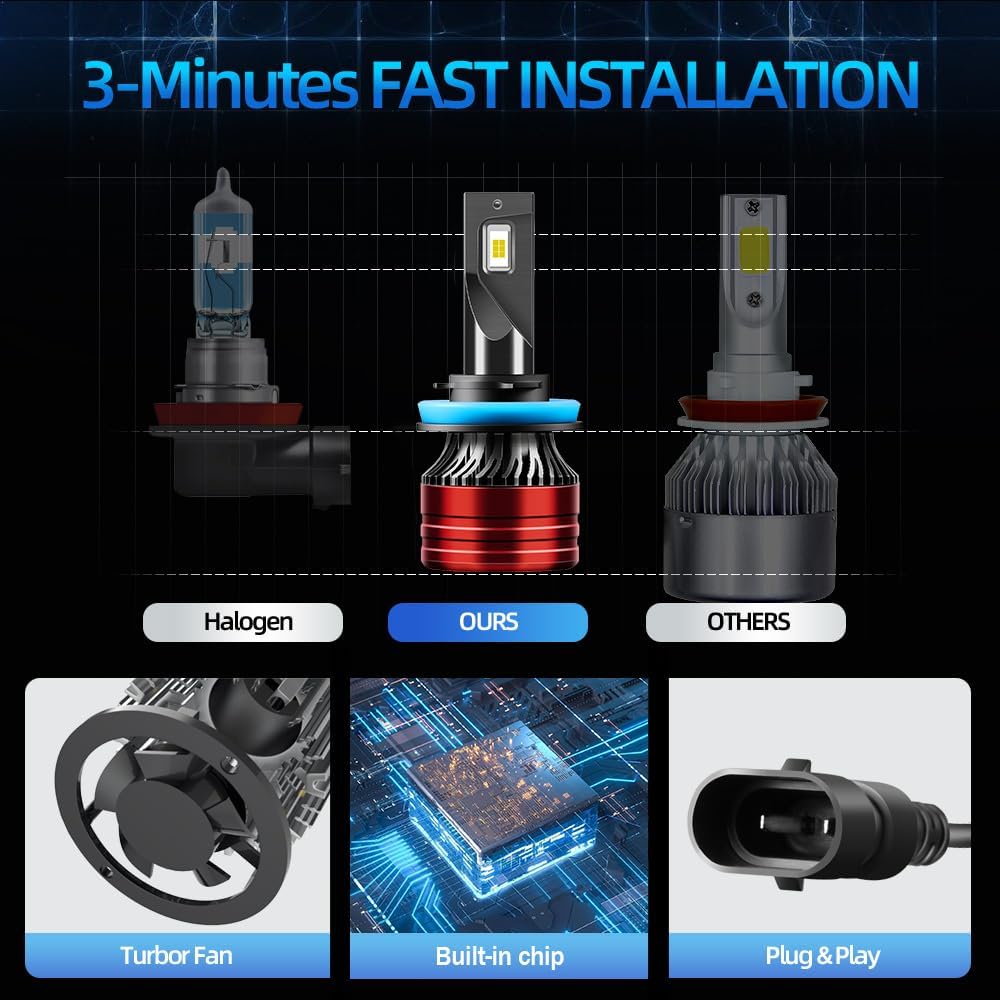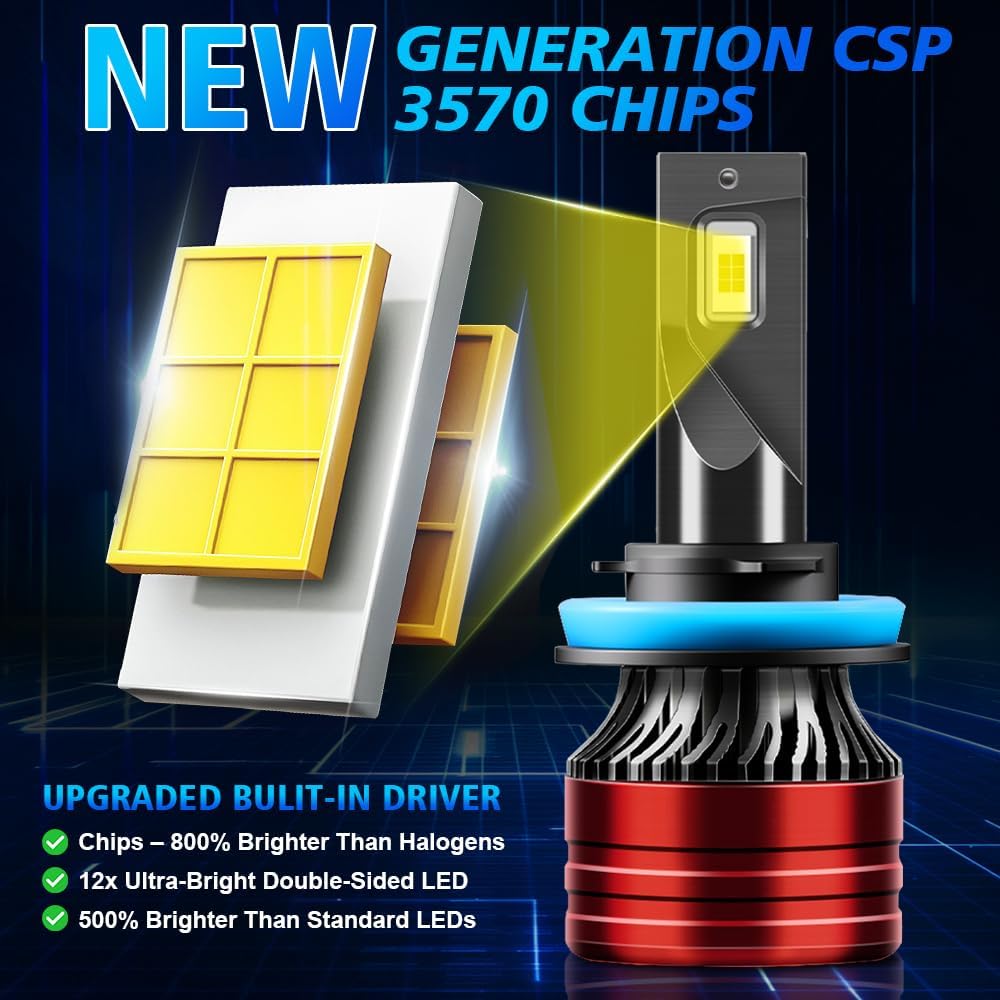 Precision Design:1:1 Design for Halogen Bulbs Original Beam Patterns,Ultra-thin Precision Chip Offer A 800% Brigther Pure White View,6000-6500K White Light Output Provide Exceptional Visibility On The Road, Clear To Read The Road Sign,Prevent Dangerous Glare, Protects Eyes, and Keep Driving Safety