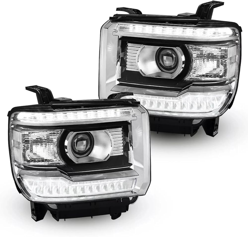 Headlight Clear Lens LED DRL Lamps for GMC Sierra 2014-2018 1500 2500HD 3500 HD