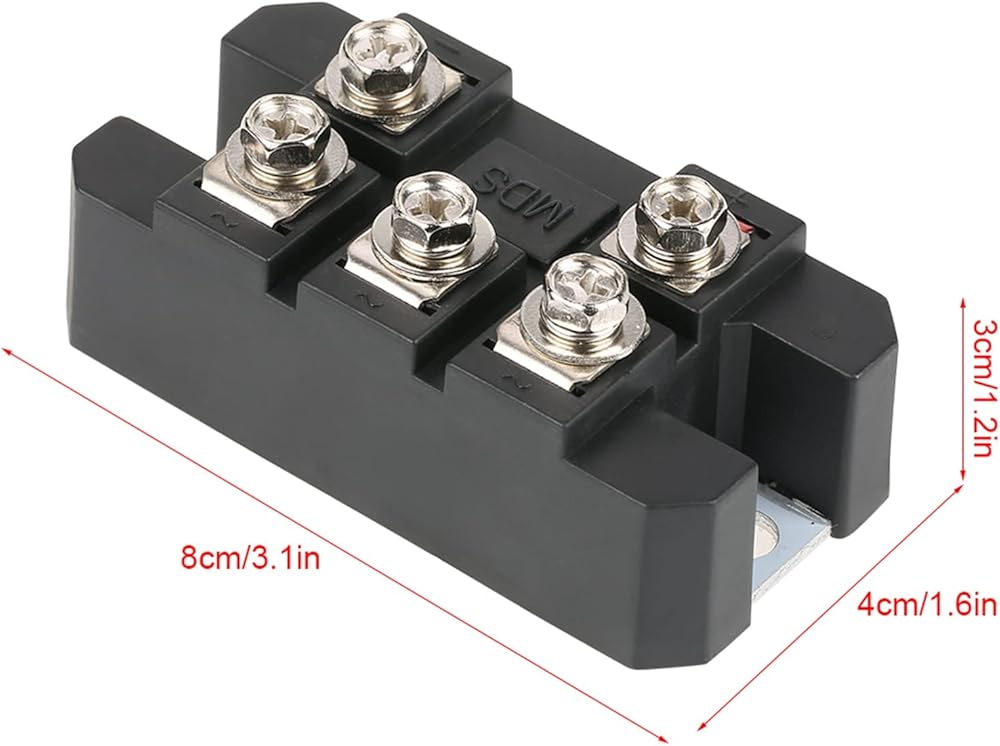 Features:High quality bridge rectifiers used for conversion of an alternating current input into a direct current output.Well welded structure with good temperature and power cycle ability ensures a more stable performance.Designed for three phase rectification, maximum average forward rectified current is 100A.