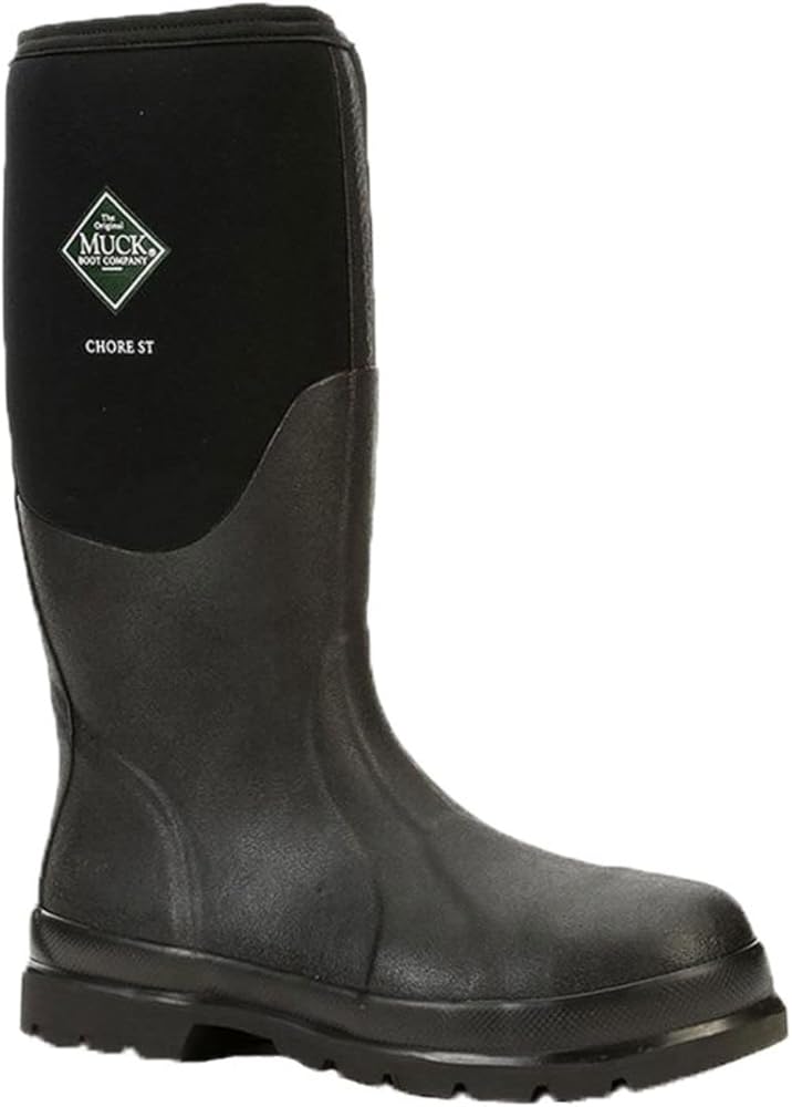 Ideal for landscaping and construction workers who require added toe protection, these Muck Chore Classic Tall Steel Toe Men's Rubber Work Boots keep feet dry and comfortable all day long. The 5 mm neoprene is waterproof and shock-absorbent. It also retains heat and is flexible to adjust to the natural contours of the foot for good support. In addition to outer waterproofing, these men's safety boots keep feet dry on the inside by wicking perspiration away from the skin. Built for durability, these men's rubber work boots feature a steel toe for impact protection, a steel shank for added support, and easy-to-clean rubber overlays and outsoles.