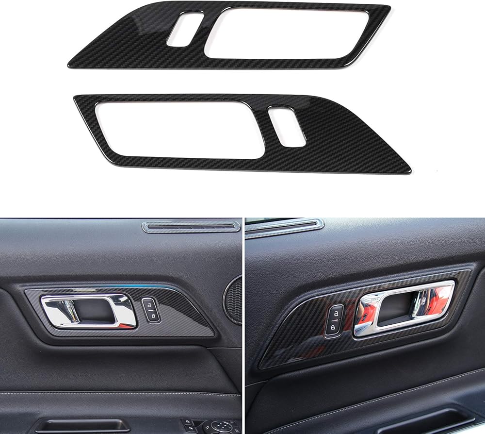 Fitment -- JeCar Carbon Fiber Interior Door Handle Trim Fit for Ford Mustang 2015-2024 Interior Accessories.