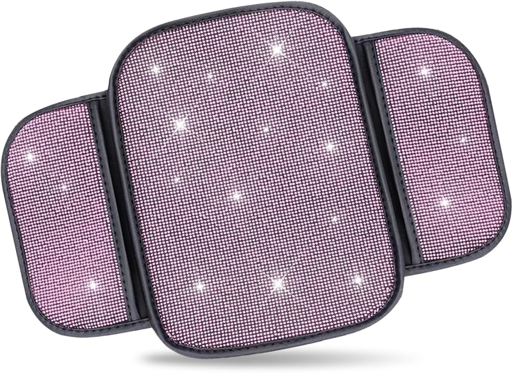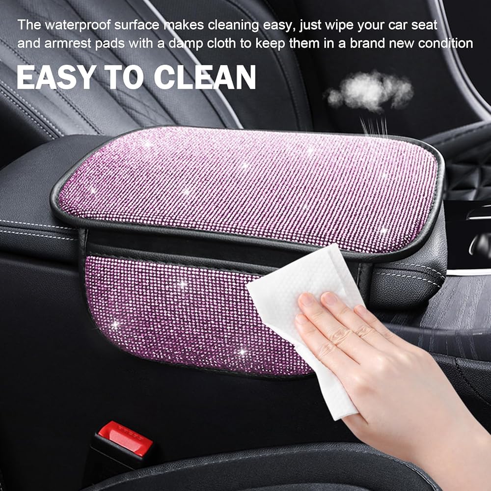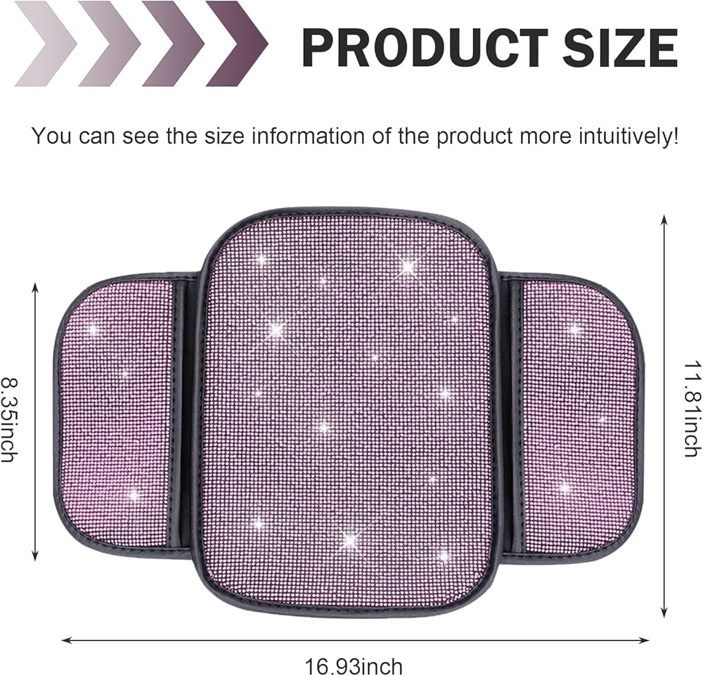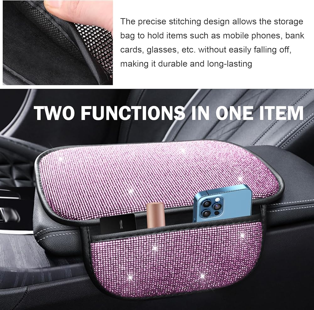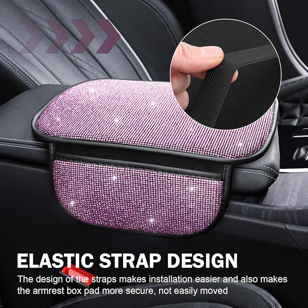 Crystal Rhinestone Design: This car armrest console cushion features stunning bling crystal accents that transform your car's interior into a luxurious space, adding elegant glamour for style-conscious drivers.