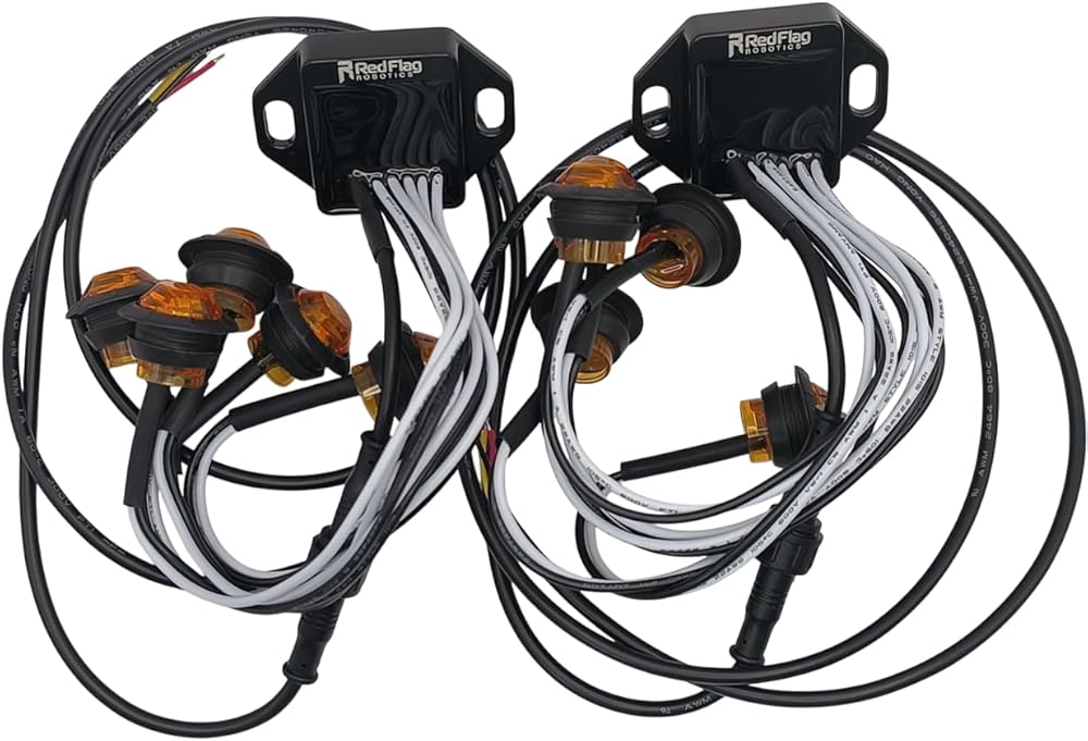 Each turn signal kit contains two sequencing modules with 5 bullet lights each and waterproof connectors, with harness wires long enough to reach to the headlights in most cases. The lights install through the back of a 3/4" hole in up to 3/16" (5mm) metal or plastic. The lights always turn on sequentially with the turn signal, but can be wired to either turn off all at once, or turn off in sequence and then stay on as running lights. The lights in all variants are light up amber, but the lenses come in either amber or a dark gray smoked lens. To install, drill five 3/4" holes in a row. Slide the grommer down the wire of each light. Pass each light through the hole from the backside, and squish the grommets into the hole. Press the lights back into the grommets, and rotate them so the "top" indicator on the front of the lens faces up. Connect the black wire to the vehicle's ground, and the red wire to the positive of the vehicle's turn signal bulb. If you would like the lights to sequence back on after the turn signal is cancelled to act as running lights, then connect the yellow wire to the vehicle's running light circuit. Otherwise, leave the yellow wire disconnected. The light nearest the plug is the first to turn on, and the light furthest from the plug is the last to turn on.