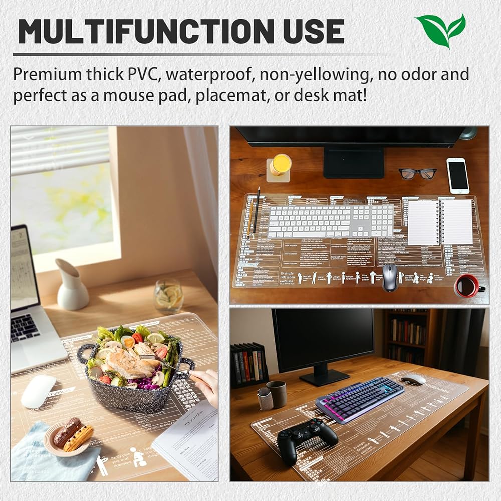 【Large Size, Non-Yellowing】Our excel cheat sheet desk pad is made of high-quality transparent material, ensuring it remains non-yellowing with long-term use. The extra-large size design of 31.5"x11.8" inches covers a wider desktop area, with larger fonts for more comfortable viewing, and helps you keep your desktop tidy and organized, making your office space well-ordered.