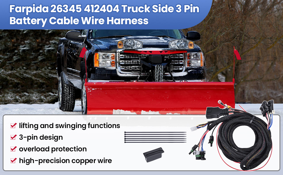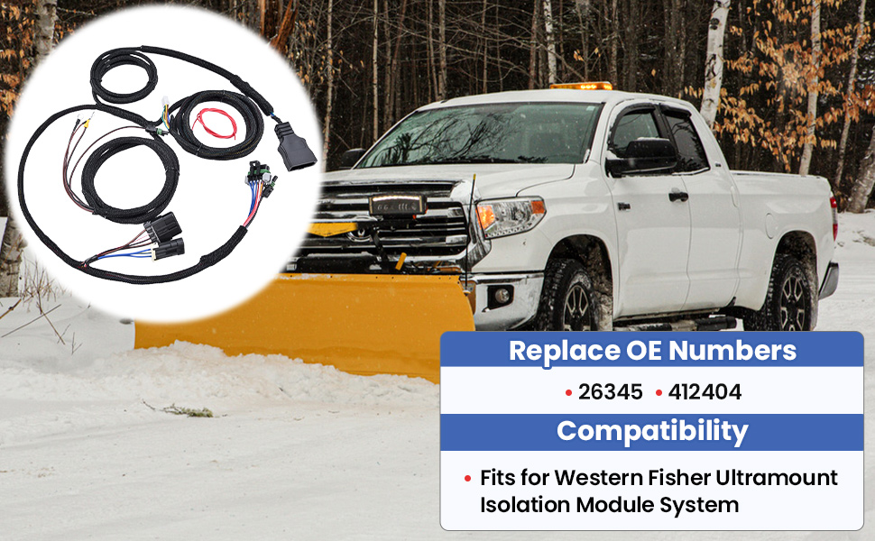 Vehicle Fitment: This 26345 3 Pin Truck Side Control Harness fits for Western Fisher Ultramount Isolation Module System. Please double check the above compatibility table, part photos, OE part number and part description to make sure it is what you need.