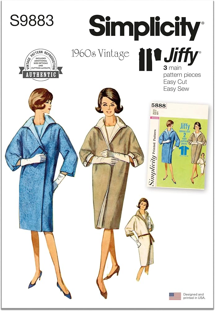 From wardrobe essentials for all ages to home and kitchen accessories, Simplicity patterns are a wonderful way to add handmade pieces to your home. Vintage Simplicity 1960'S Jiffy reversible coat sewing pattern. Coat worn reversible or not has collar and optional top-stitching trim. The below elbow length kimono sleeves with optional turn back cuffs have notch detail. A purchased tie belt may be worn at waistline. Sewing pattern kit comes with sewing templates, fabric recommendations, pattern pieces, and instructions, and the packaging includes information on how to select fabric and trims, as well as sizing information. Can be made to fit sizes 8-10-12-14-16. Proudly designed and manufactured in the United States of America.
