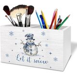 Chinoiserie Christmas Snowman Pen Holder for Desk, Winter Snowman Wooden Box Sign Desk Decor for Home Office Decoration, Grandmillennial Christmas Pencil Organizer in Kuwait