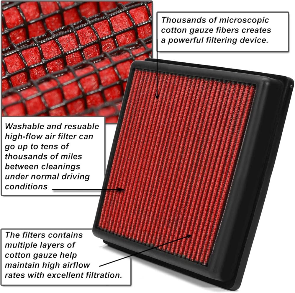 DNA Motoring AFPN-080-RD Clean Air Washable Drop In Panel Air Filter Enhance Engine Performance Power & Acceleration Improve [Compatible with 08-11 Ford Focus 2.0L]