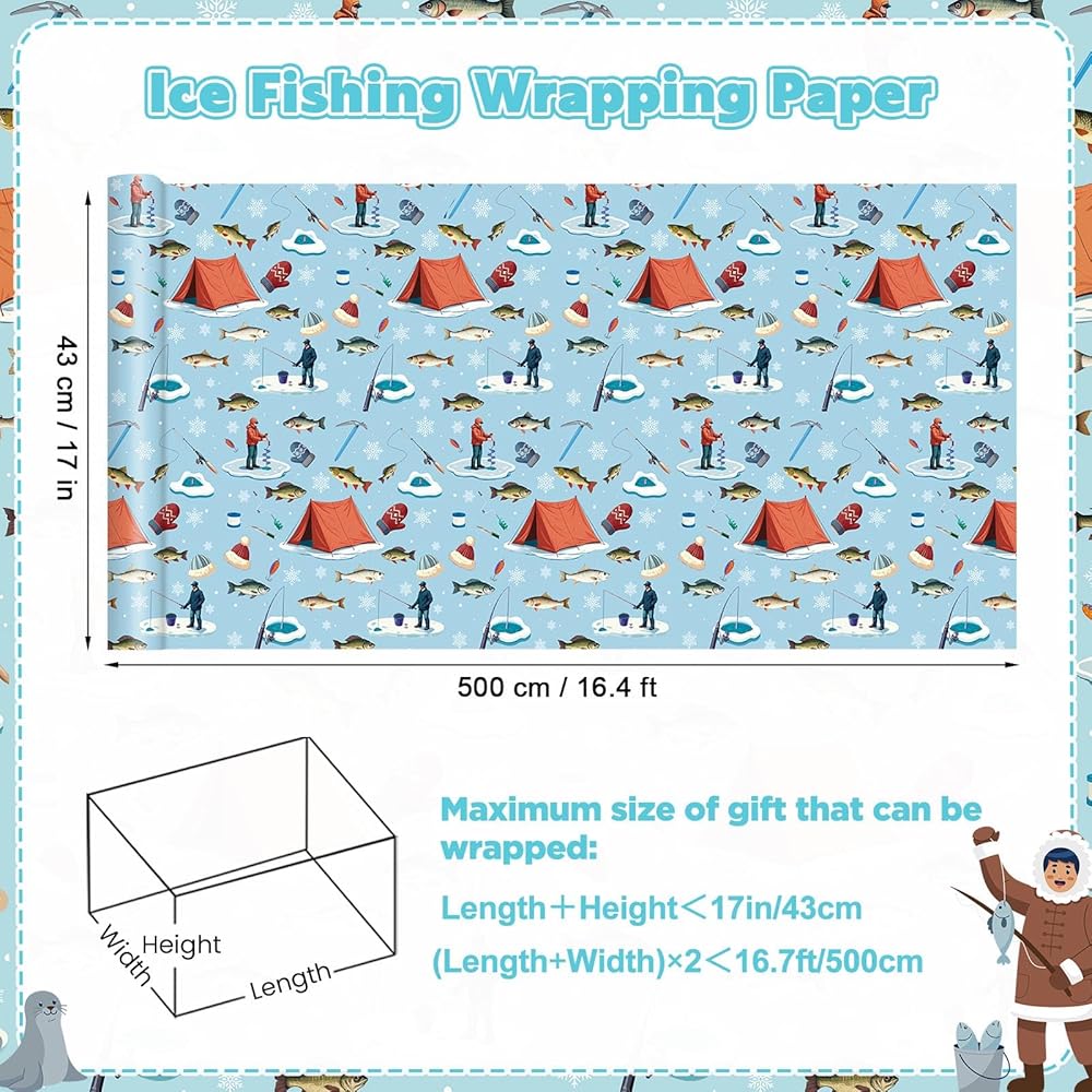 • Package Included: You'll receive 1 roll ice fishing wrapping paper, measuring 43 cm (17 inches) wide by 500 cm (16.4 feet) long. That's plenty of paper to wrap multiple gifts of various sizes! This wrapping paper is the perfect way to add a touch of wintery fun to your presents, especially for the ice fishing enthusiast in your life