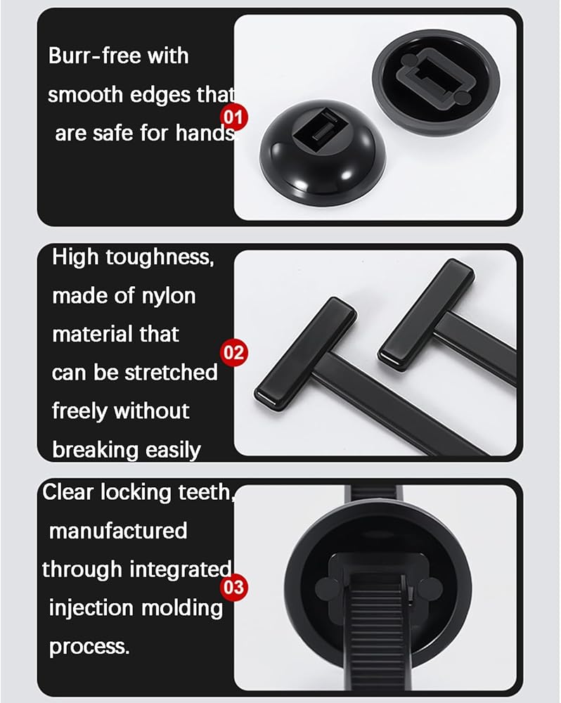 Heavy Duty Nylon Material:These durable nylon cable tie buckle fastener are made of high-strength nylon, which has excellent resistance to heat,wear and will not crack or fade