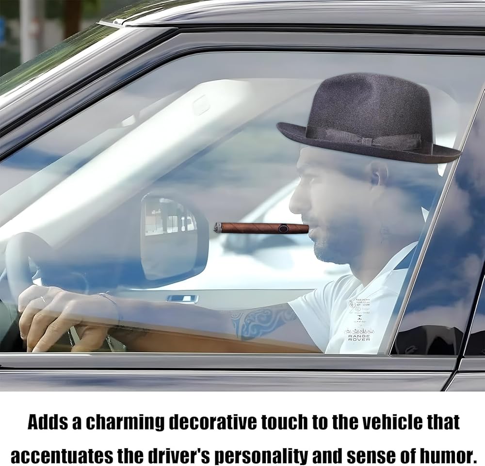 【Easy to Use】: Firstly, clean and dry the window surface of your car to make sure it is free of water and dust. Next, you sit in the driver's seat and adjust the best sitting position and angle. Then, the person outside the car puts the fedora sticker on the driver's head and the cigar sticker on the driver's mouth to create a feeling of cigar enjoying.