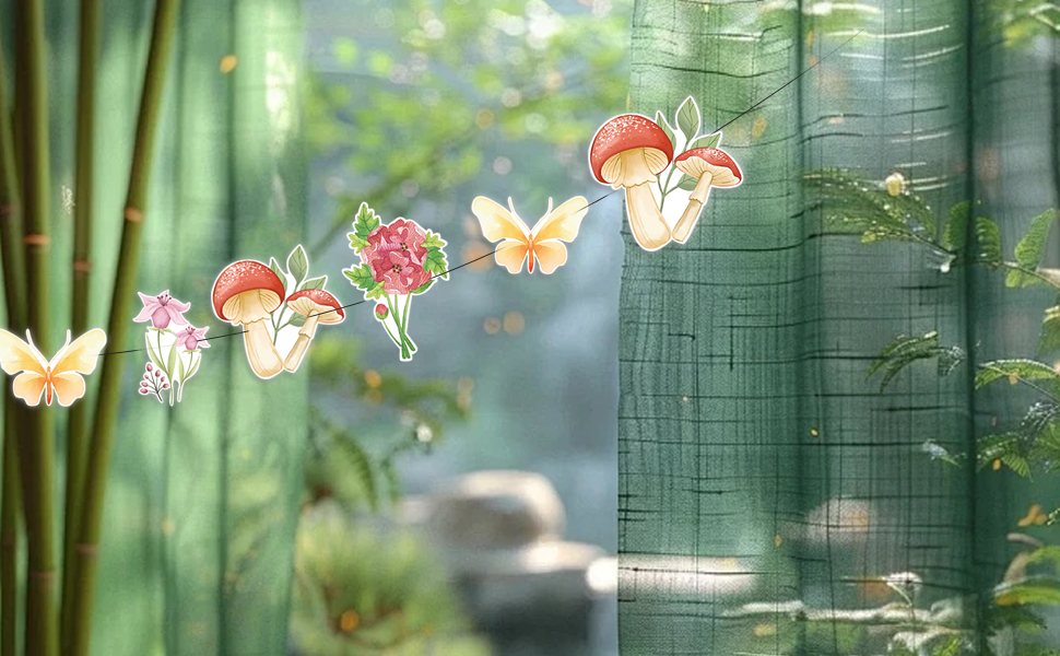 【Fairy Theme Design】Featuring glittery green letters, delicate butterflies, mushrooms, and floral elements, these fairy party decorations create a fantasy woodland vibe. Ideal for fairy garden parties, baby showers, or 1st birthday photo backdrops that spark imagination!