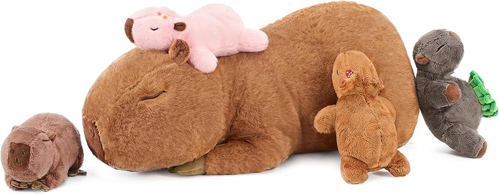 Interactive Playtime Fun: The mommy capybara has zipper on her abdomen. Kids can easily take out and put back the four adorable babies inside. Then the creative play begins! Children can enjoy endless role-play adventures with these charming capybaras—sparking imagination, creativity, and creating special moments they'll treasure!