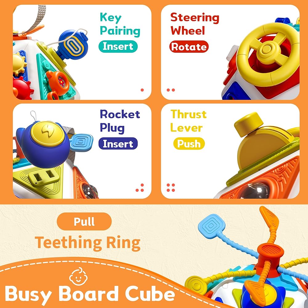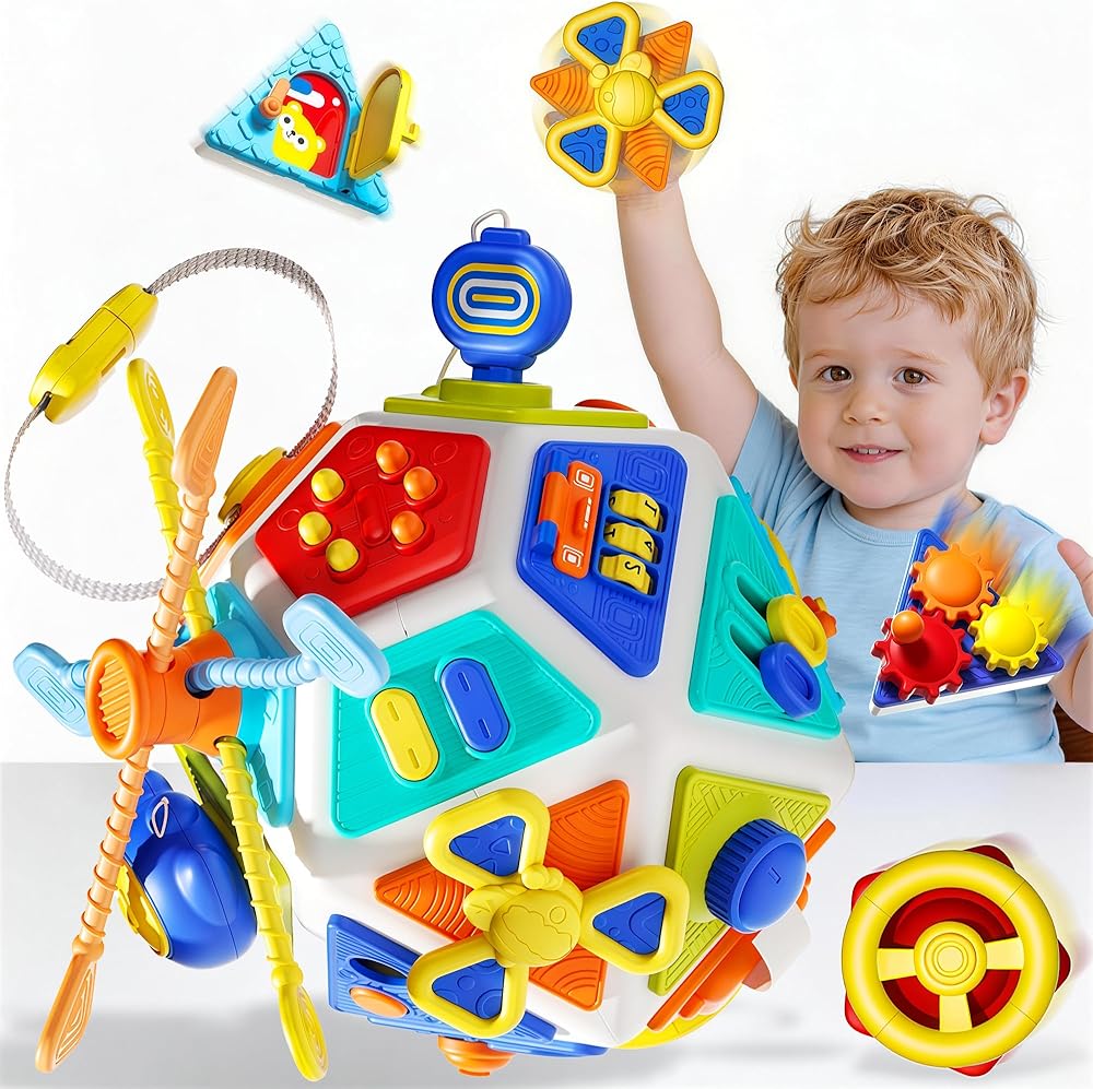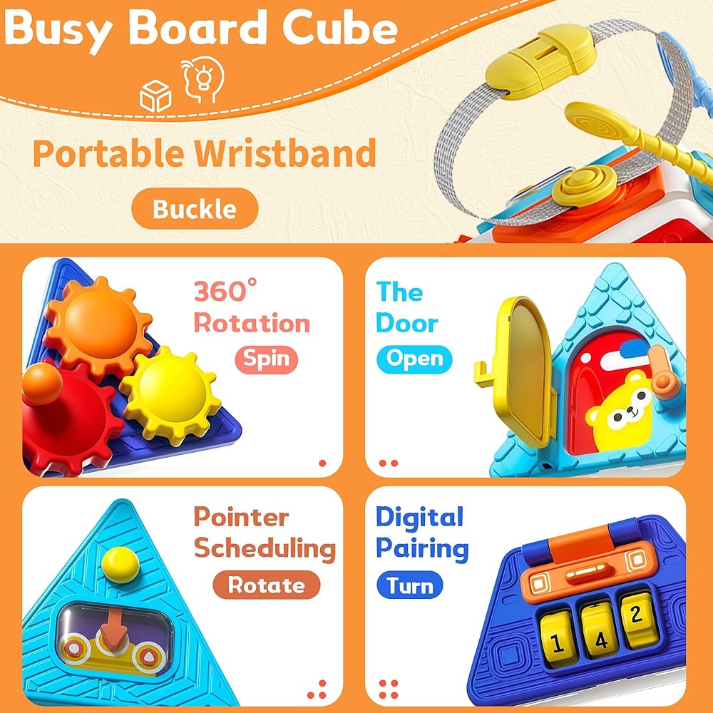 【Perfect Gift for Kids】Activity cube is a great concept to stimulate curiosity and help them discover new things, the busy cube comes with a delicate box, compact size, which is an excellent gift for children with autism and ADHD. perfect for Christmas gifts, stocking stuffers,Thanksgiving gifts, birthday gifts, toddler gifts for 12M+ baby toddlers boys and girls