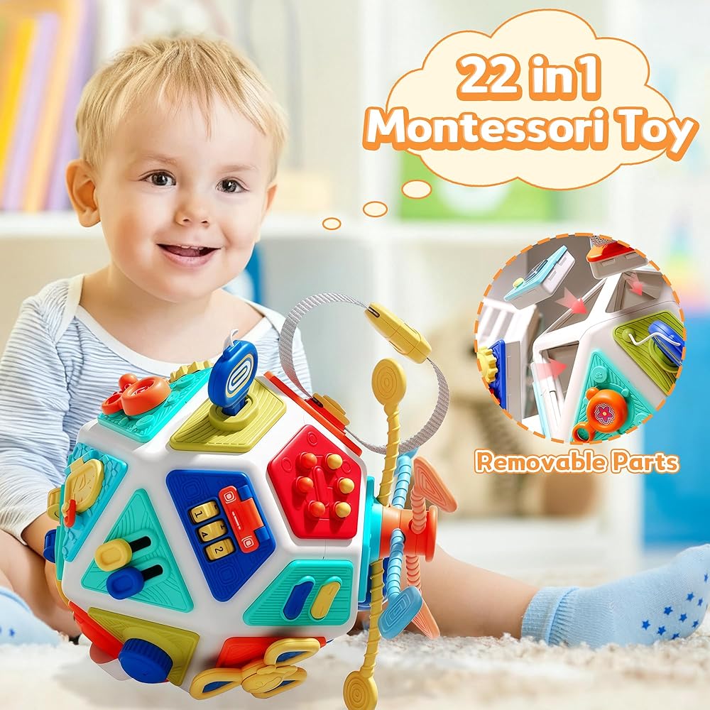 22-in-1 Busy Board for 1 Year Old, Activity Cube Montessori Sensory Toys for for Toddler 1-3, Early Educational Travel Toy for 1 Year Old Kid , Fine Motor Skills Gifts for Infant 12-18 M+ Boys & Girls