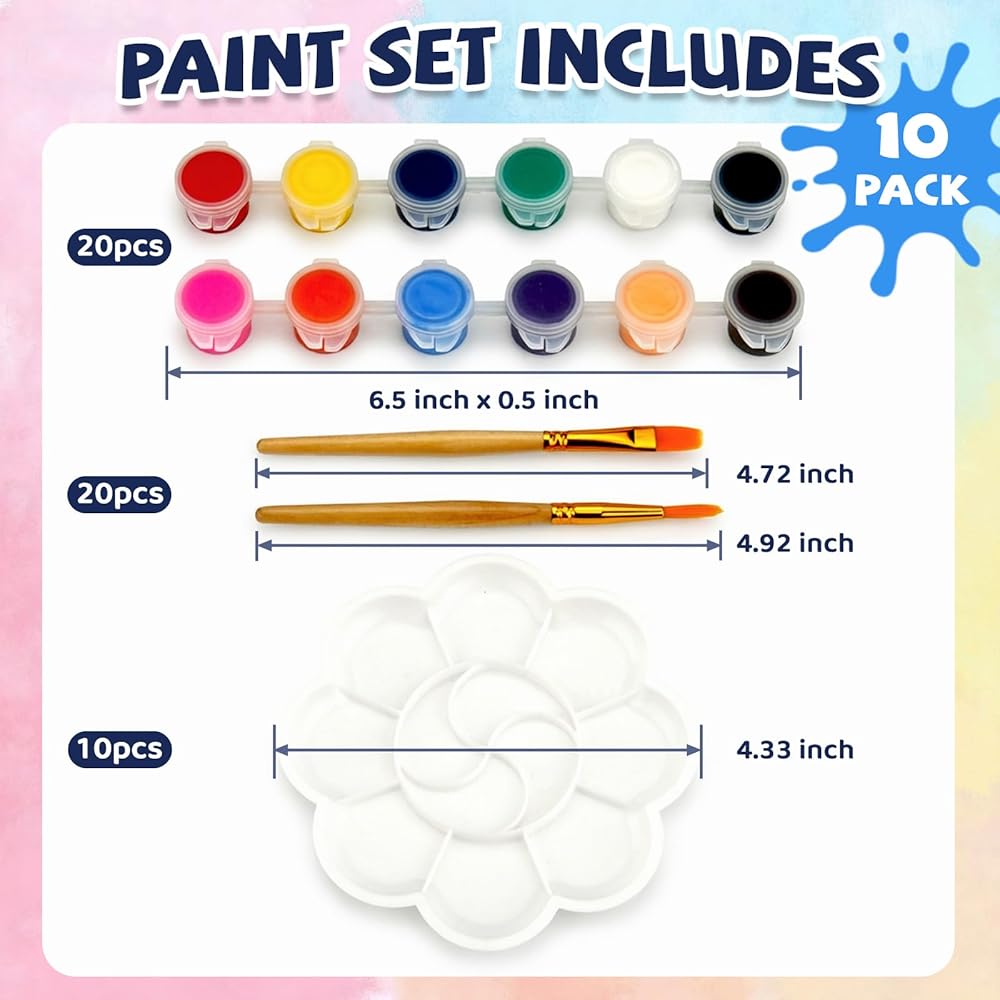 hapray Acrylic Paint Set for Kids, 12 Colors Washable Paints With 5 Drawing Trays&10 Wooden Paintbrushes, Mini Watercolor Paint Kit for Adults, Valentine Easter Christmas Art Craft Kit Gifts, 10 Set