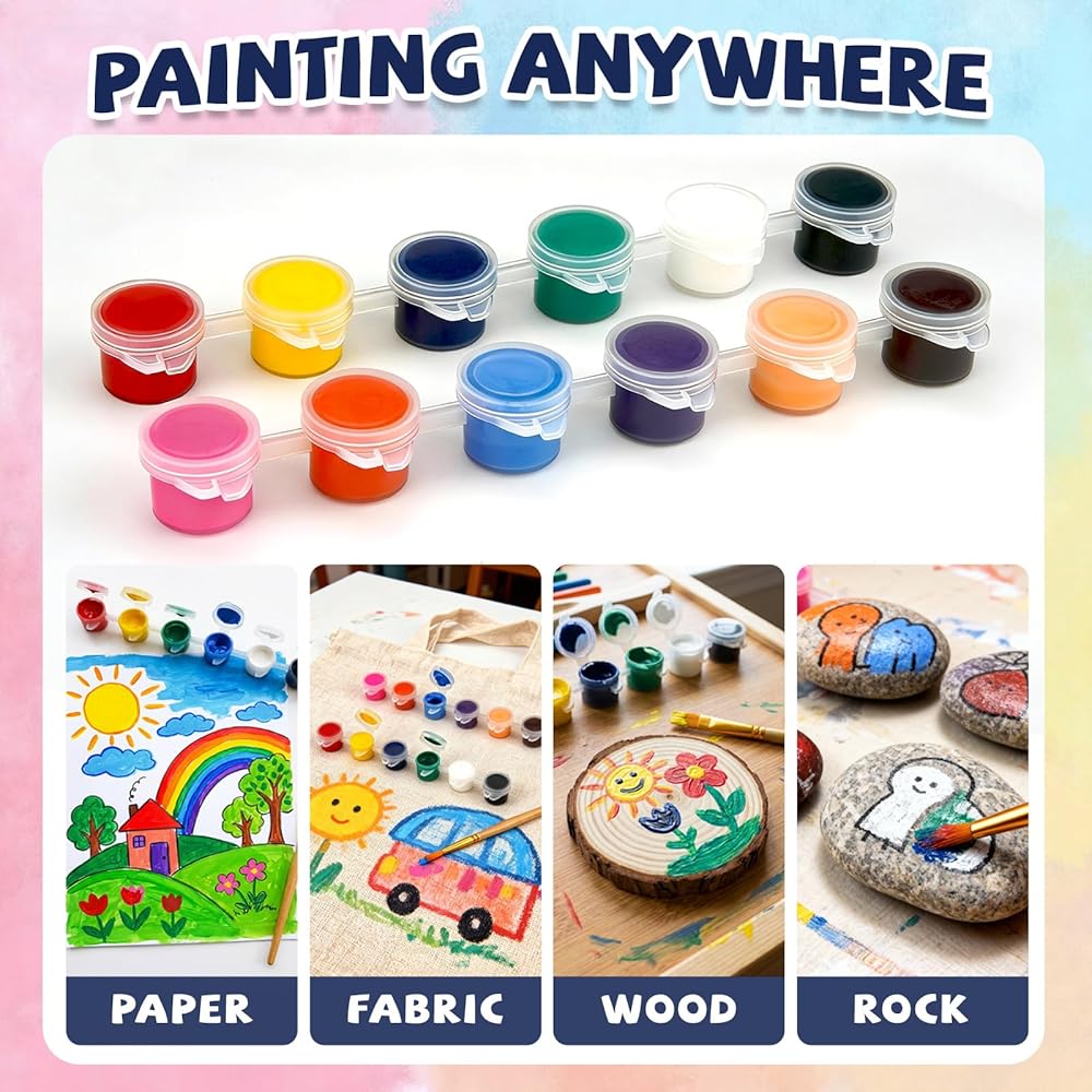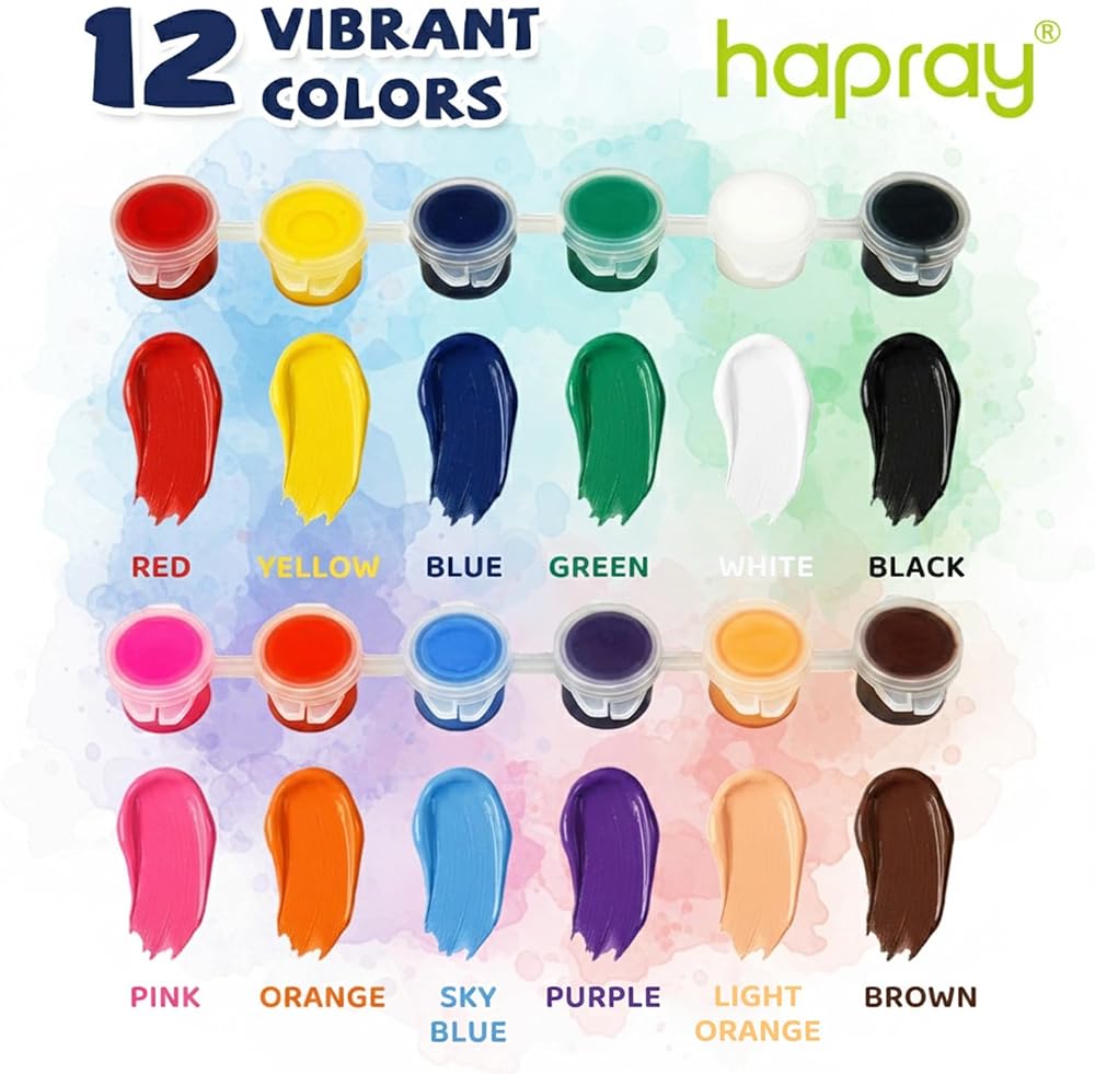 Kids Activities Essential: Hapray acrylic paint set is perfect for boys and girls aged 3, 4, 5, 6, 7, 8, 9, 10, 11, 12 and above who love painting. It can not only improve children's painting skills but also train their concentration and patience. Gatherings suitable for children, school activities, family events, birthday parties and all kinds of festival parties