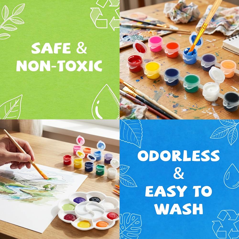 Portable Mini Acrylic Paint Kits: In addition to the brushes and paints, this paint set also comes with a separate palette, which is designed to be compact, lightweight and easy to carry. It is very suitable for outdoor painting activities and painting parties