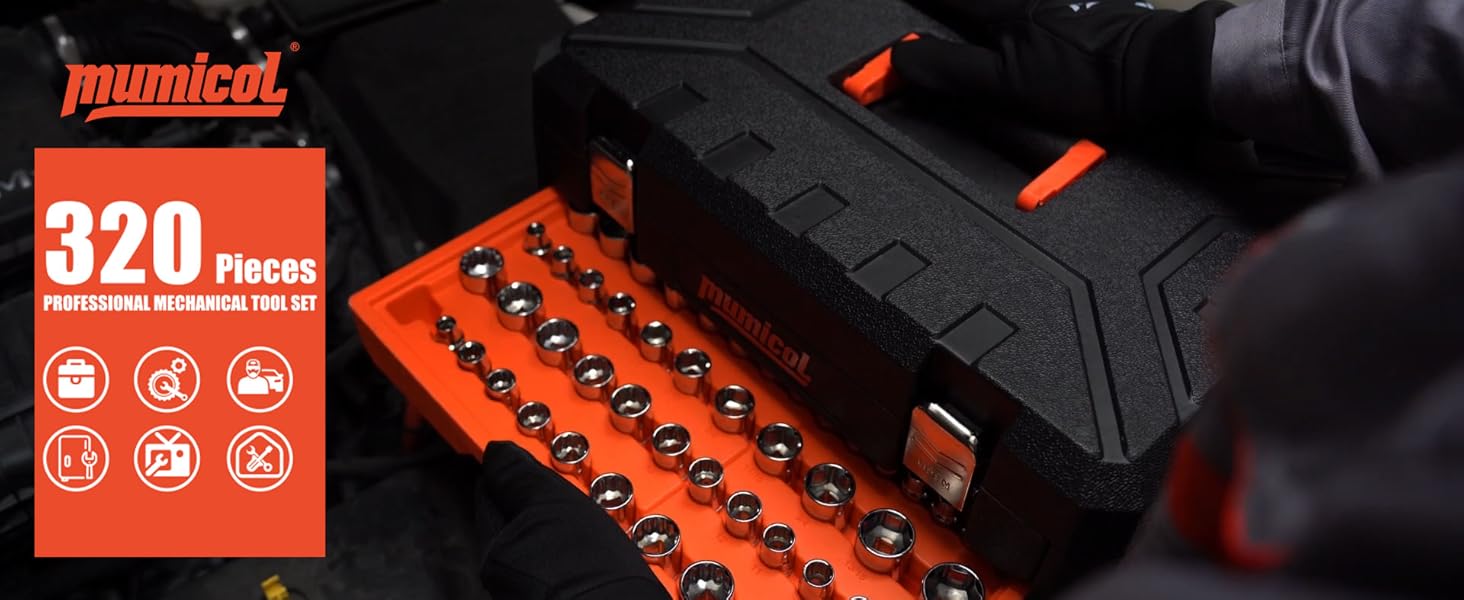 Mechanic Tool Set, Socket Set, 320-Pcs Professional Mechanics Tool Set & Metric and Standard Socket Set, 1/4″ 3/8″ 1/2″ Drive with 72-Tooth Ratchet, Car Mechanic Tool Kit for Automotive Repair