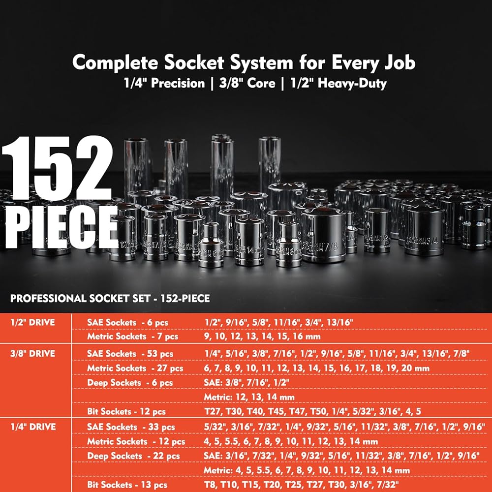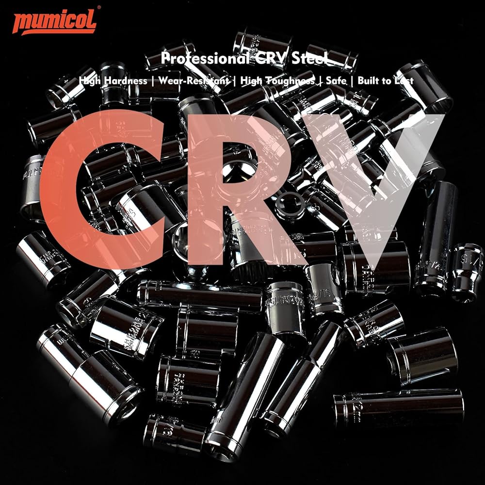 DURABLE CR-V STEEL CONSTRUCTION: Socket wrench set and tools are made from chrome vanadium steel with anti-corrosion finish, ensuring long-lasting performance and rust resistance.