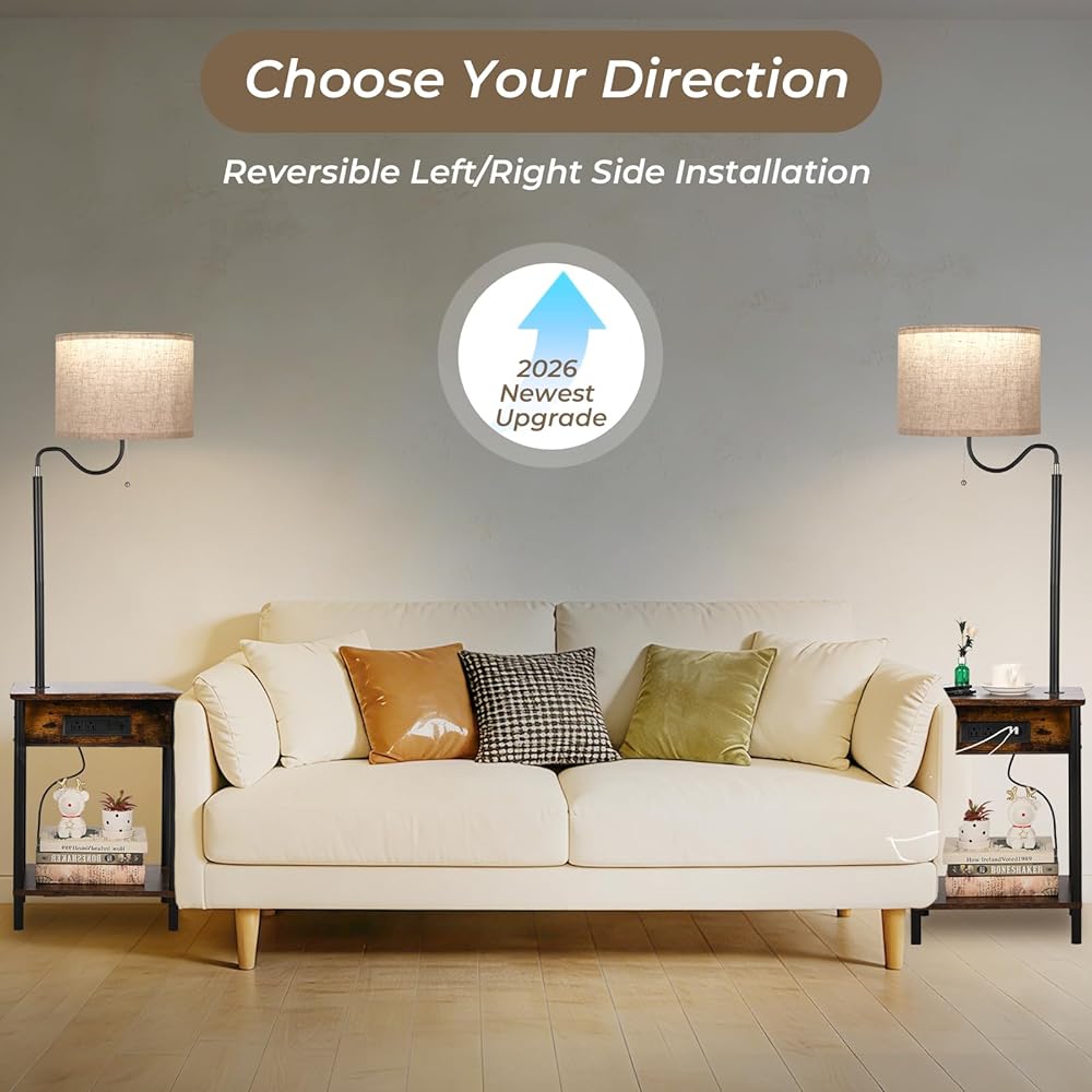 【3 in 1 Multi-functional Floor Lamp with Table】Enjoy the convenience of having LIGHTING, STORAGE, and CHARGING options in one piece of furniture. With its sleek and stylish design, this bedside table with lamp is the ideal addition to any room. The modern and minimalist look is beautiful and matches well with any decor. The thoughtful and intelligent design adds to its appeal. One-piece design, no need to worry about the lamp being knocked off.