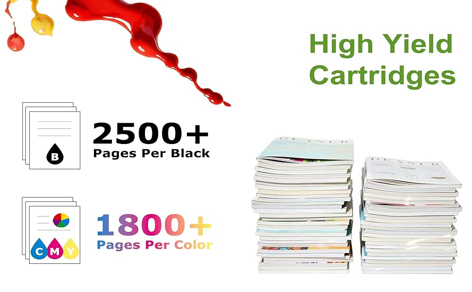 High Pages Yield: 936e black ink cartridge can print up to 2,500 pages, 936e color ink cartridges can print 1,800 pages to meet high frequency printing needs. (Based on 5% coverage rate).