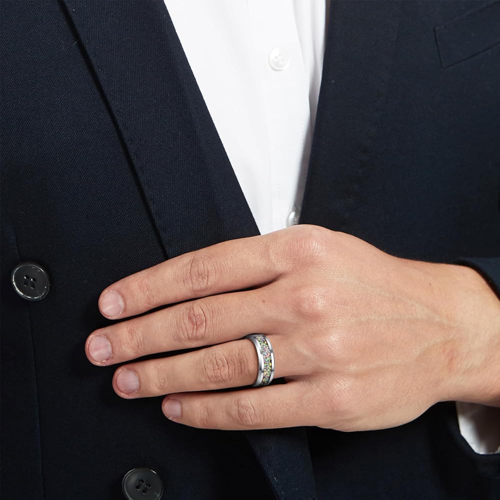 Multicolor Created Opal Fragments Inlay: Exquisite Created Opal fragments with beautiful color are inlaid into the surface of the ring, making it a stunning look