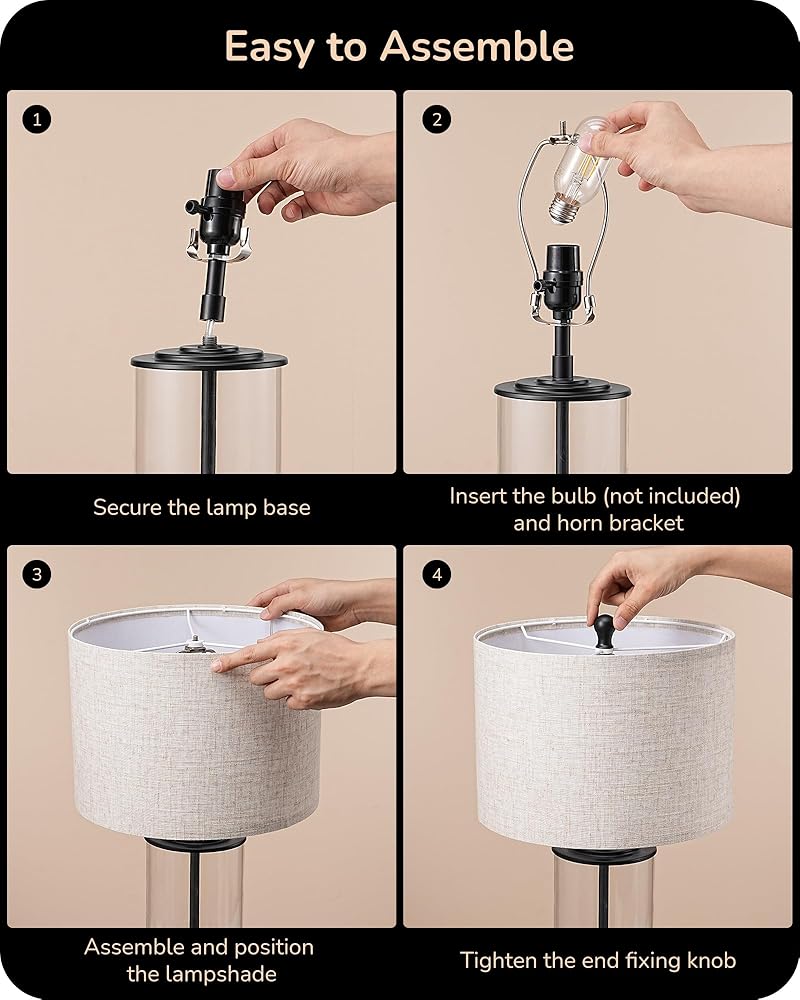 [Easy to Install & E26 Base] The bedside table lamp comes with a quick and easy lampshade assembly without complicated steps; 64.96-inch long power cord offers greater flexibility in placement; E26 base is compatible with LED, incandescent, CFL bulbs (not included)