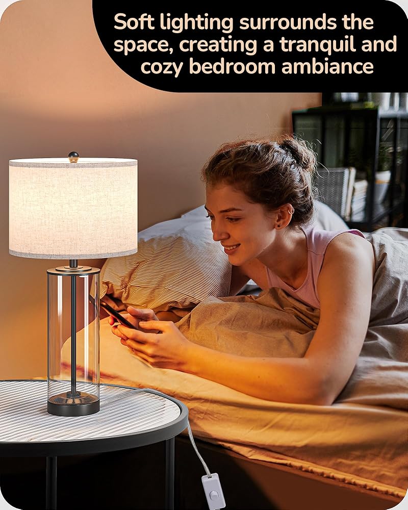 [Rotary Switch] The rotary switch hides inside the lampshade preserves the sleek and seamless design, just rotates clockwise to easily turn the side table lamp on or off; unlike touch controls, the rotary switch ensures reliable performance without sensitivity issues